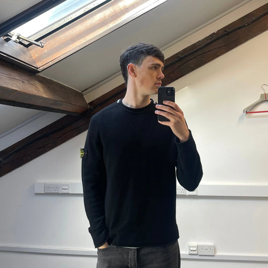 Stone Island Black AW99 Chenille Knit Jumper w/ Green Edge Badge