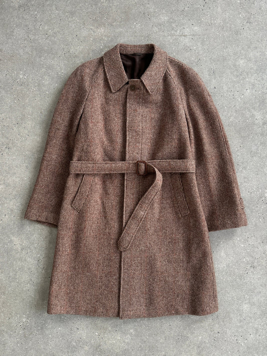 Italian Vintage Pure Wool Check Single Breasted Belted Coat - L/XL
