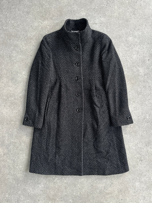 Max Mara Wool Cashmere Herringbone Single Breasted Coat - S/M
