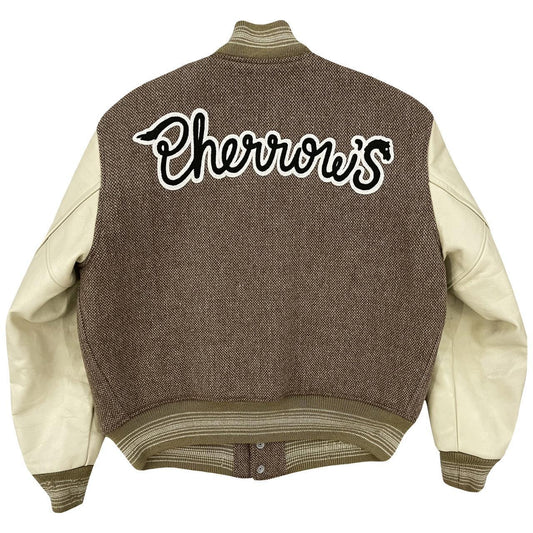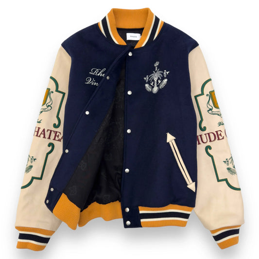RHUDE WINE CLUB LEATHER / WOOL VARSITY JACKET NAVY / CREAM / MUSTARD XL