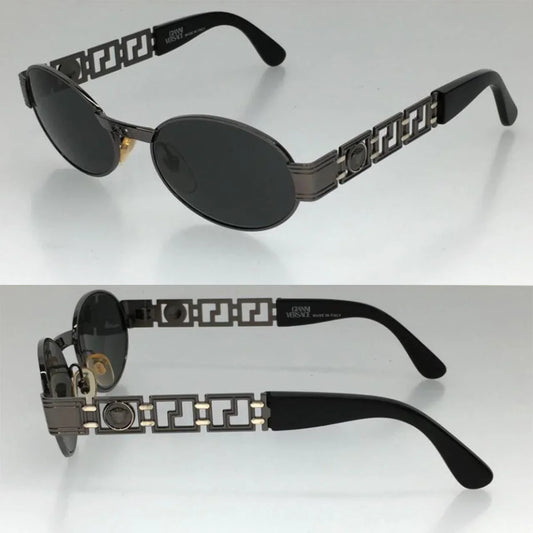 VERSACE MEDUSA HEAD LEATHER BELT GREY / BLACK W34"