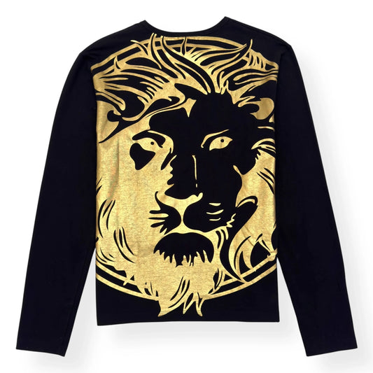 VERSUS VERSACE LION PRINT LONG SLEEVE T-SHIRT BLACK / GOLD L