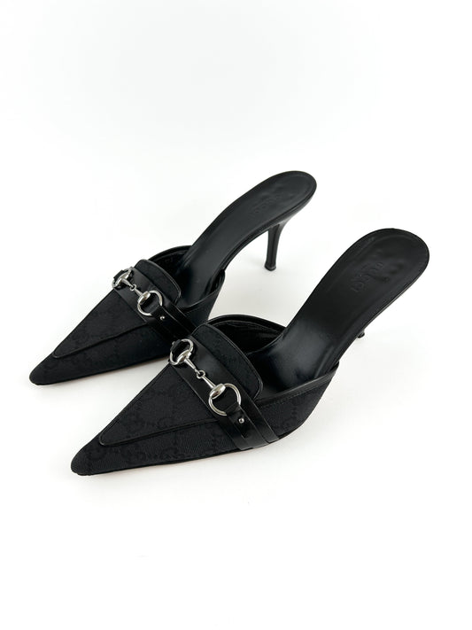 Vintage Gucci Monogram Horsebit Black Kitten Heels