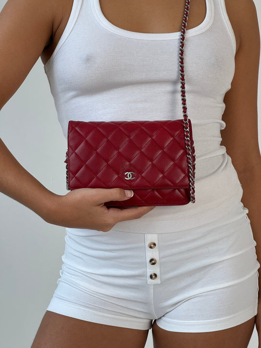 Chanel Red Lambskin Wallet on Chain (WOC) Bag SHW (2012)