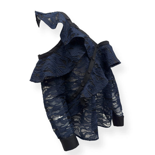SELF-PORTRAIT GUIPURE LACE ONE-SHOULDER TOP BLUE UK12