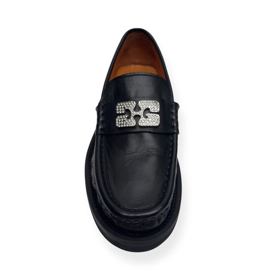 GANNI CRYSTAL-EMBELLISHED LEATHER LOAFERS BLACK / SILVER 38 / UK5