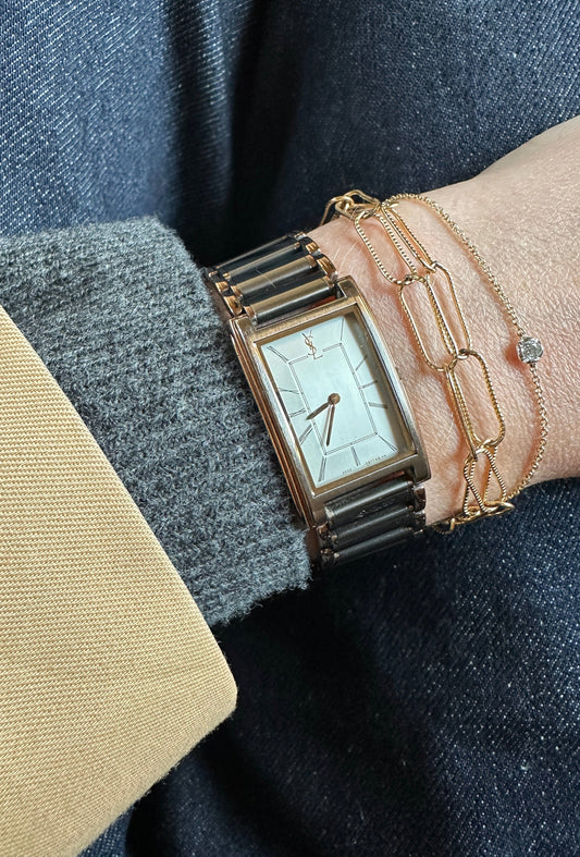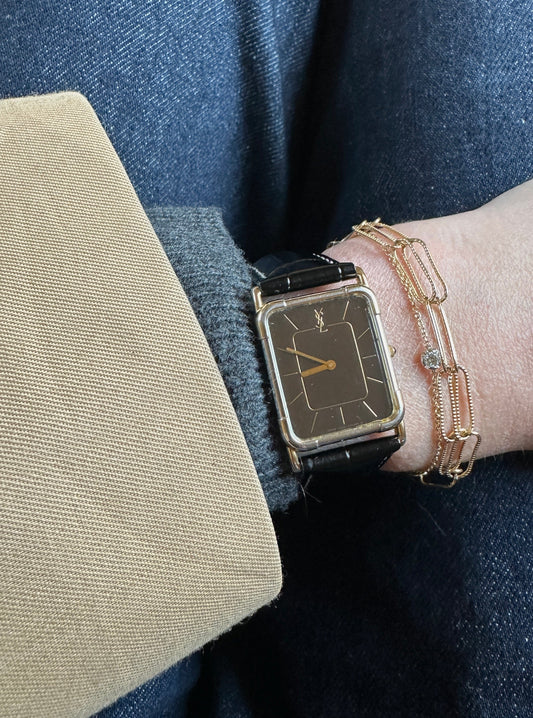 Vintage YSL Gold and Silver Plated Watch with Black Croc Leather Strap
