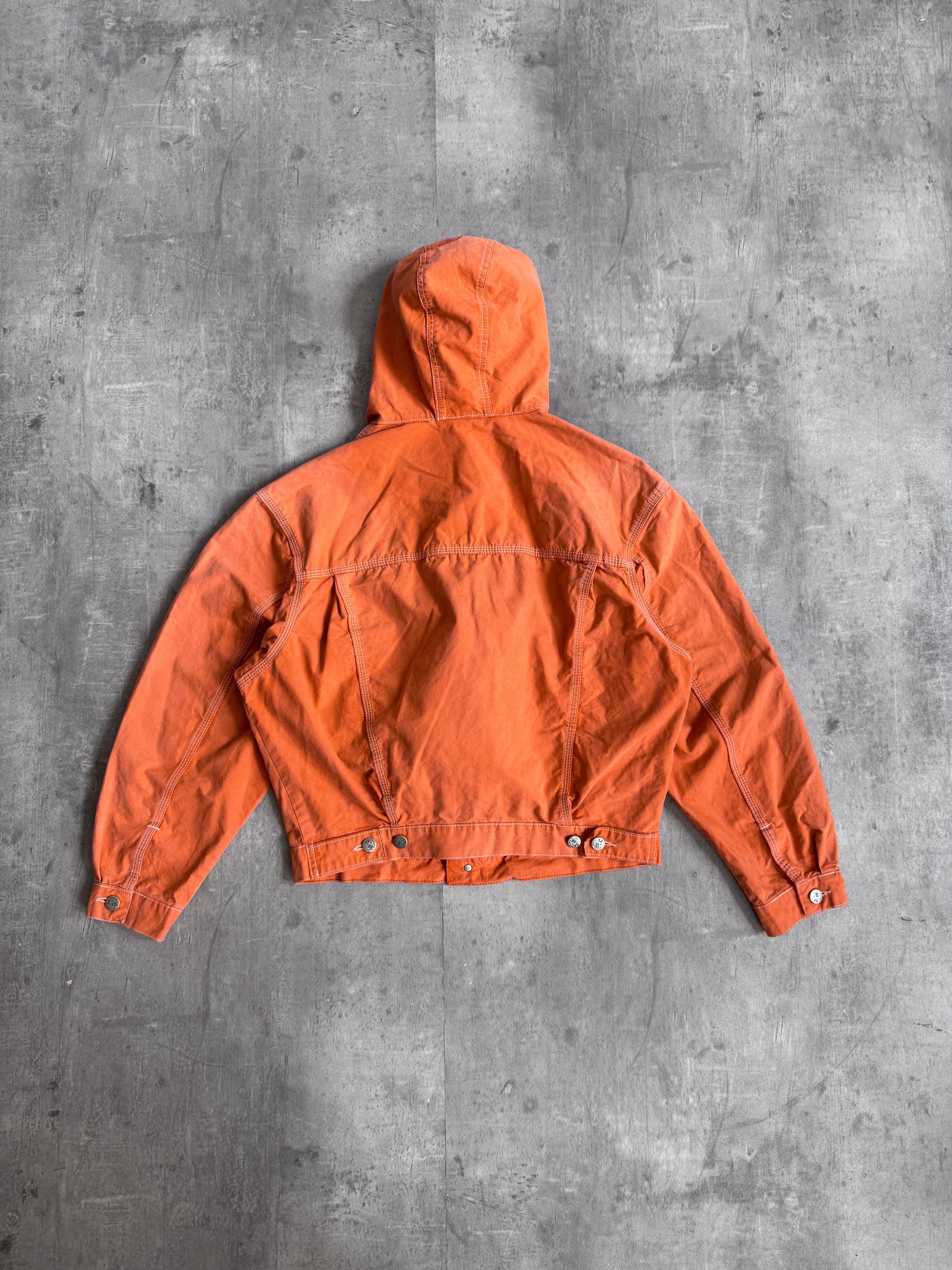 1980s Diesel Washed Orange Hooded Trucker Jacket