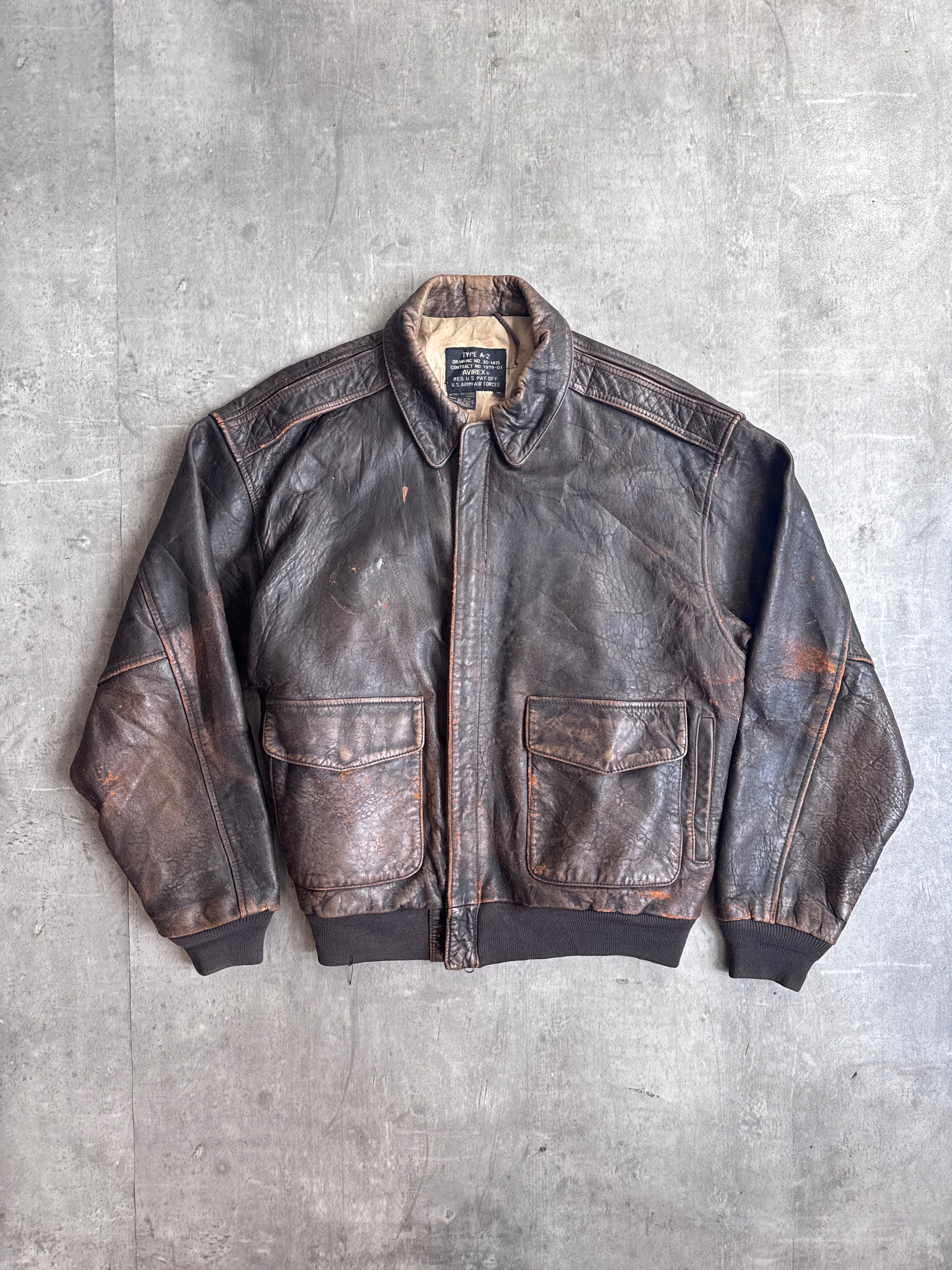 1990's Avirex A-2 Distressed Brown Leather Flyers Bomber Jacket