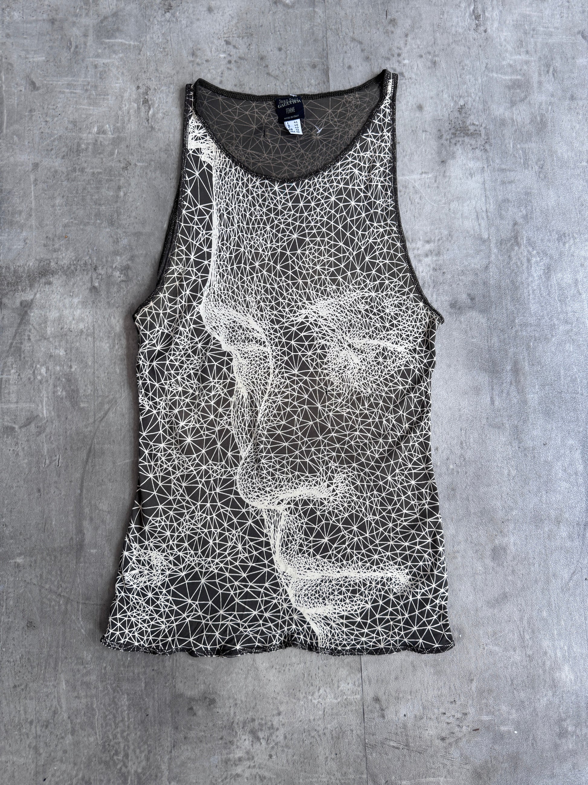 1990s Jean Paul Gaultier Patterned Face Brown Vest Top