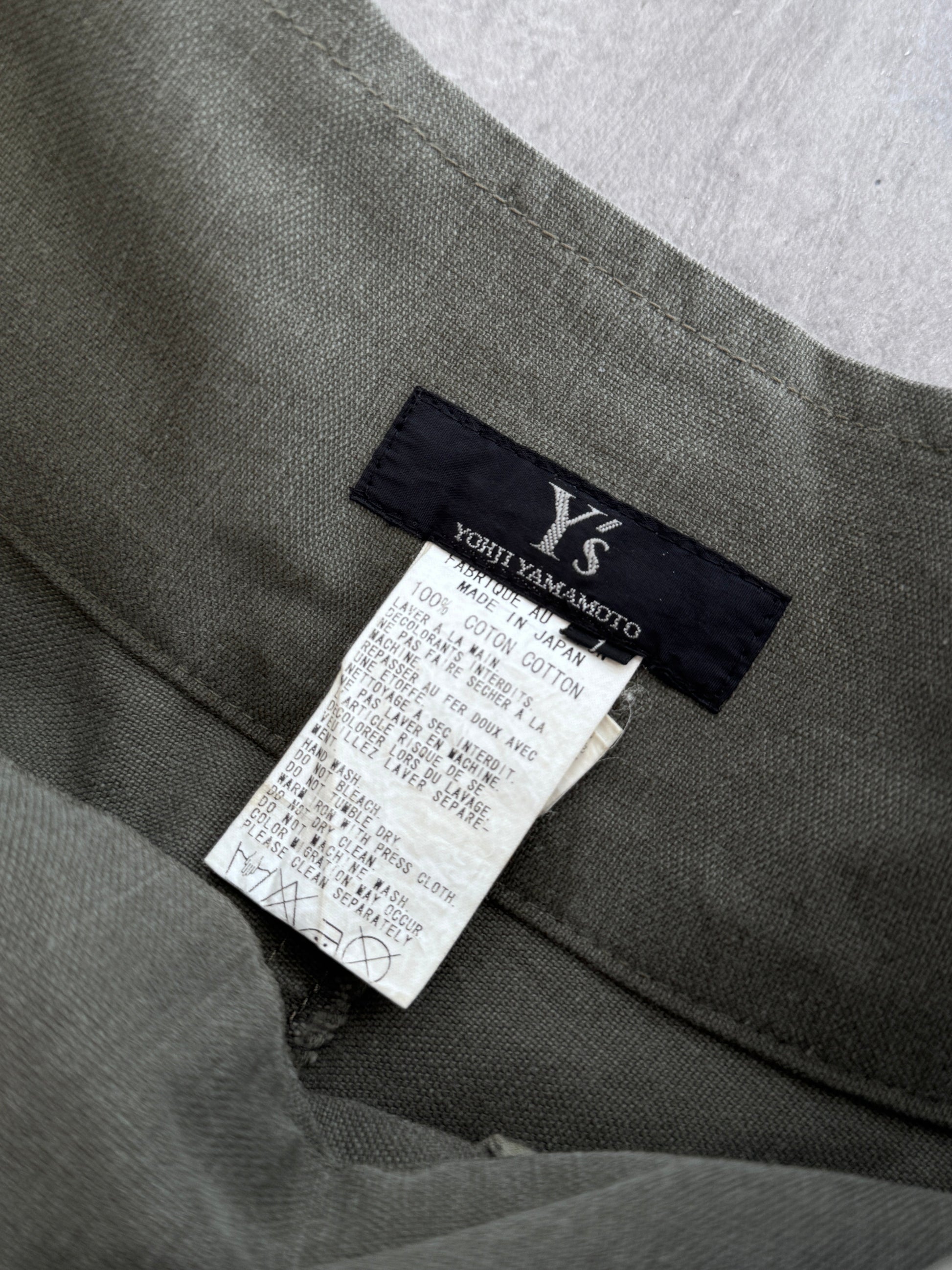 1990s Yohji Yamamoto Y's Washed Khaki Green Raw Hem Wrap Midi Skirt