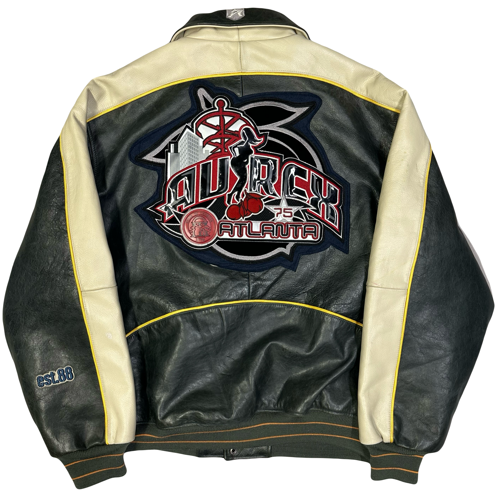 ARCHIVE Avirex Atlanta Leather Jacket In Dark Green & Cream - Bootleg ( XL )