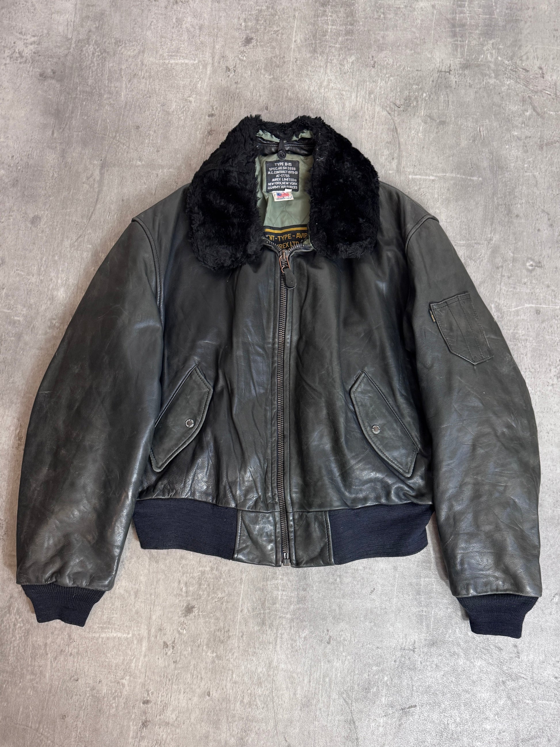 Avirex B-15 Weathered Dark Grey Modular Leather Jacket