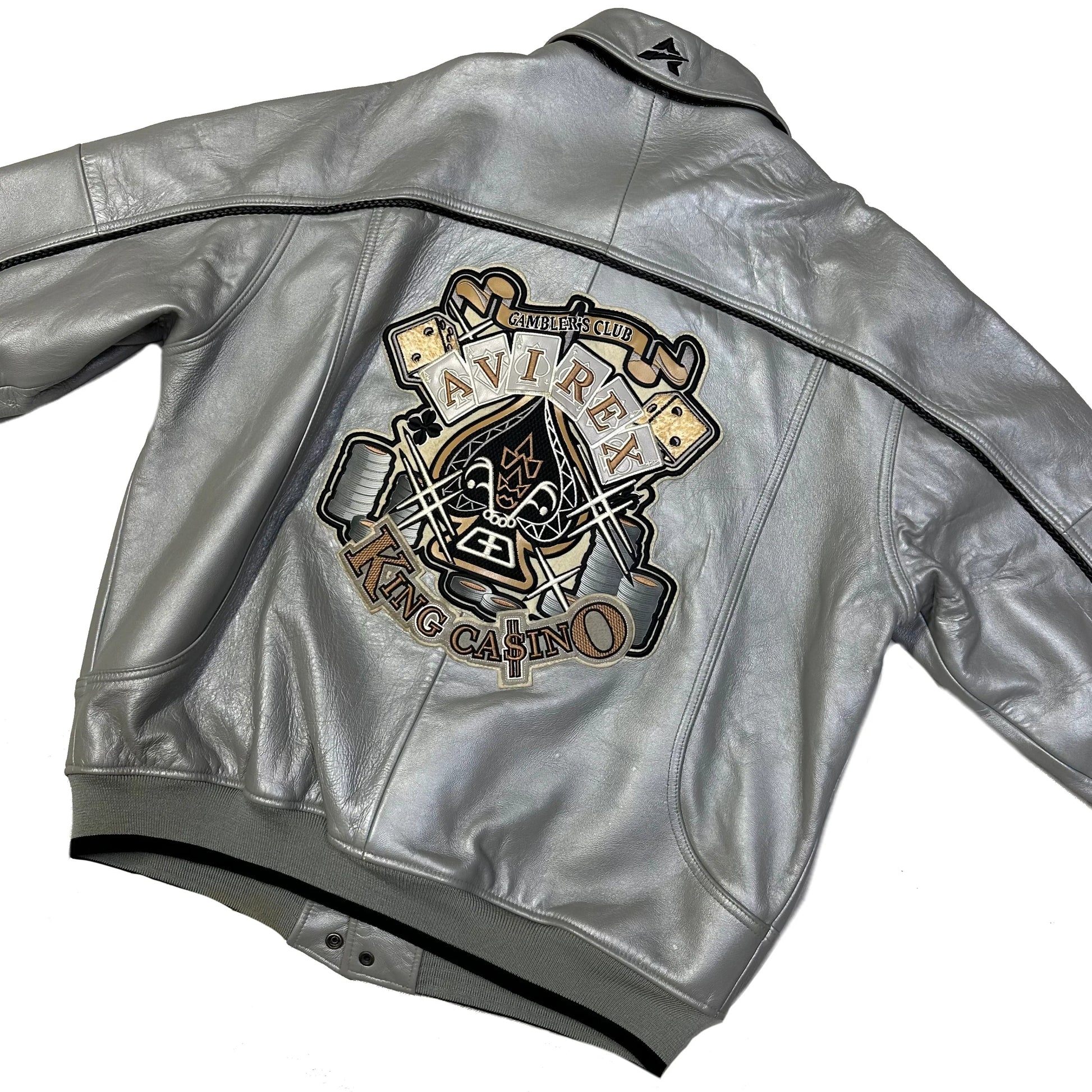 Avirex King Casino Leather Jacket In Silver ( XL )