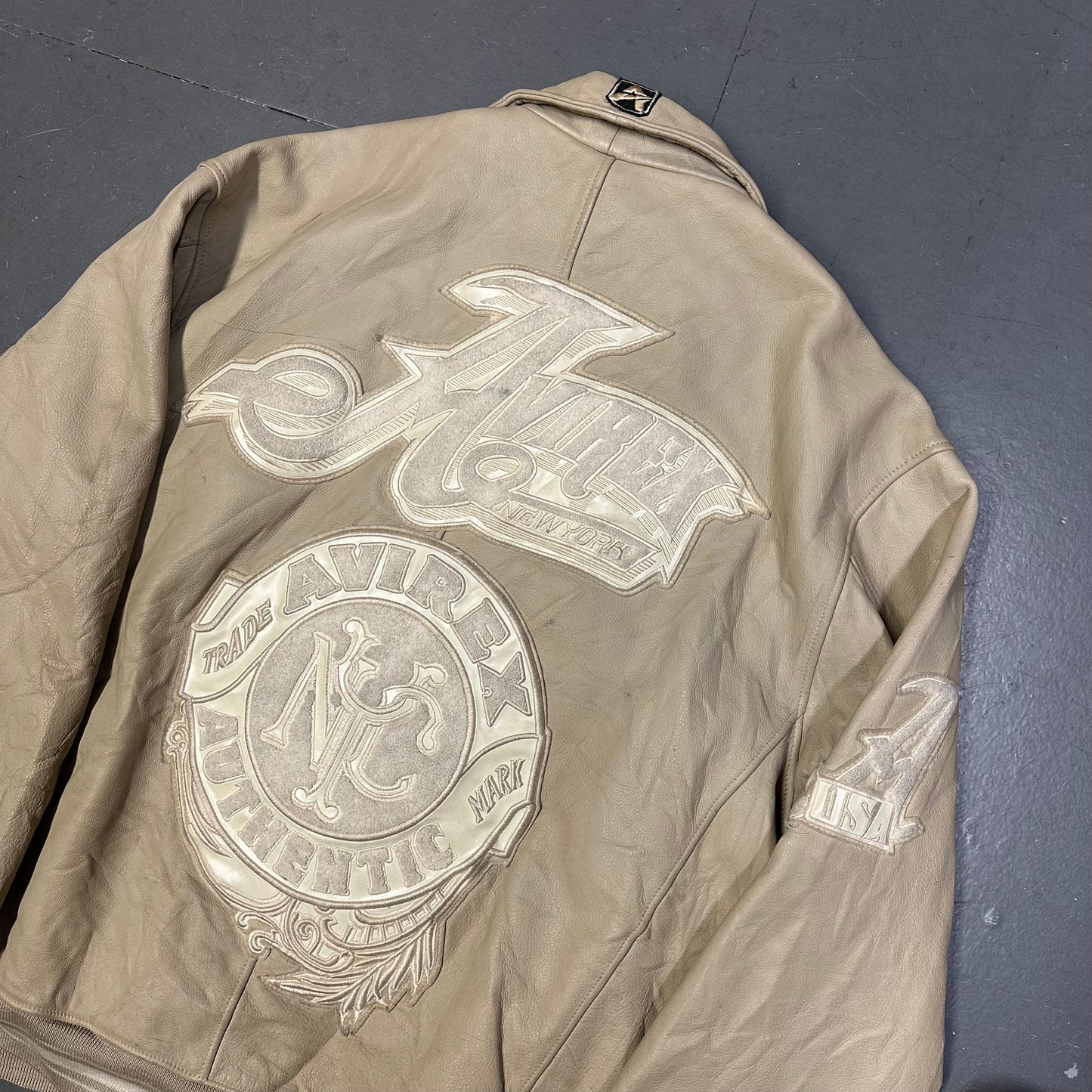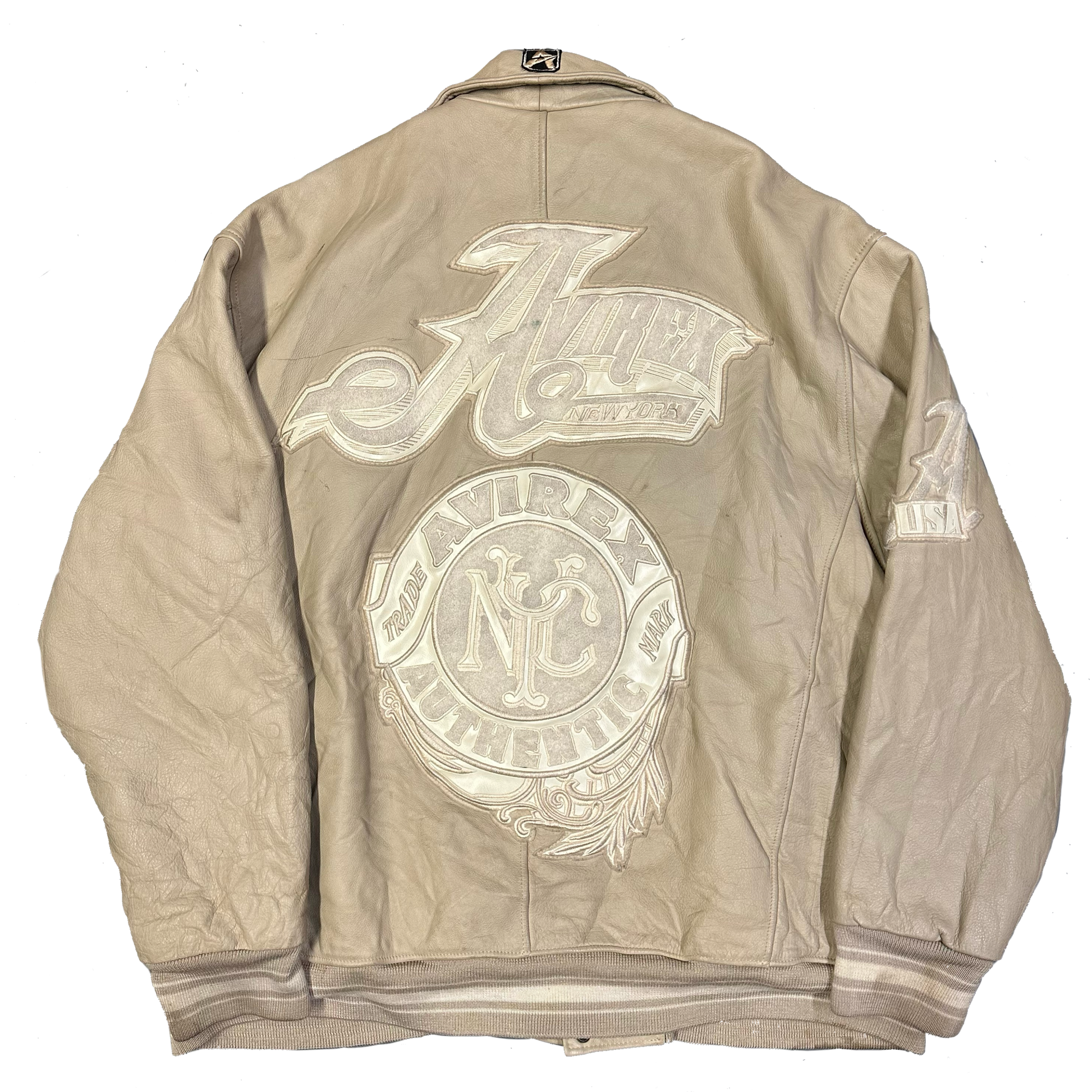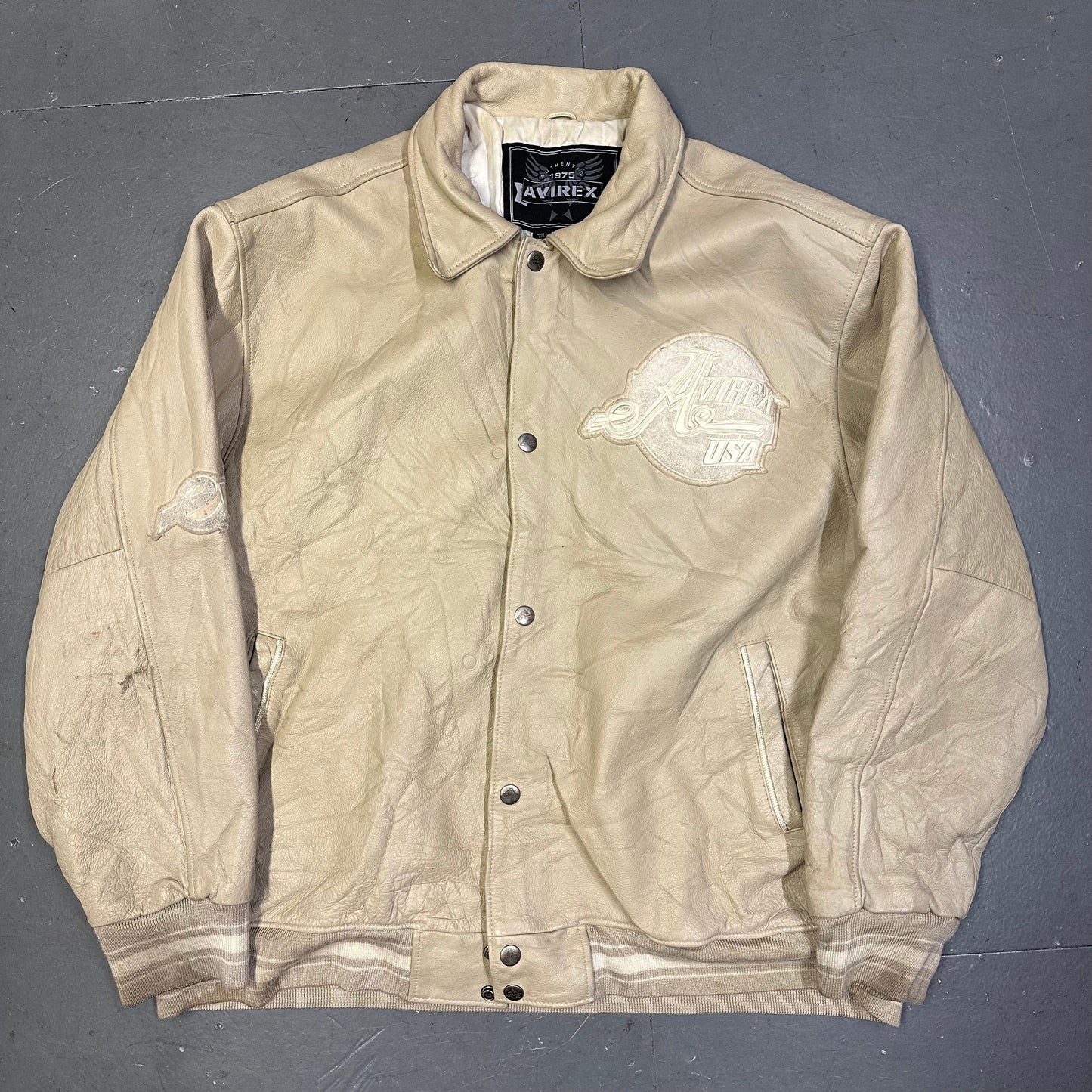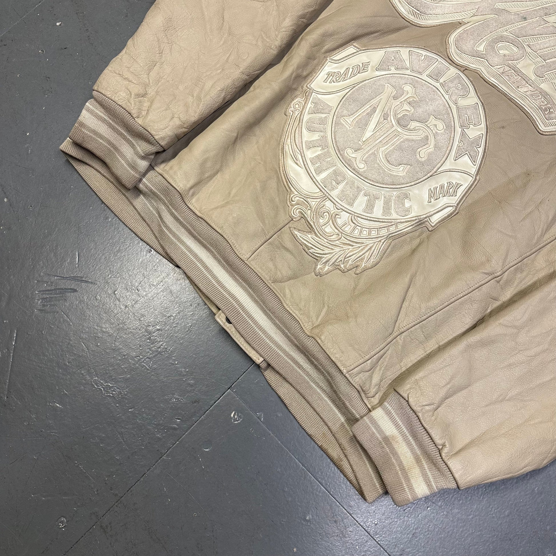 Avirex Leather Jacket In Beige ( 3XL )