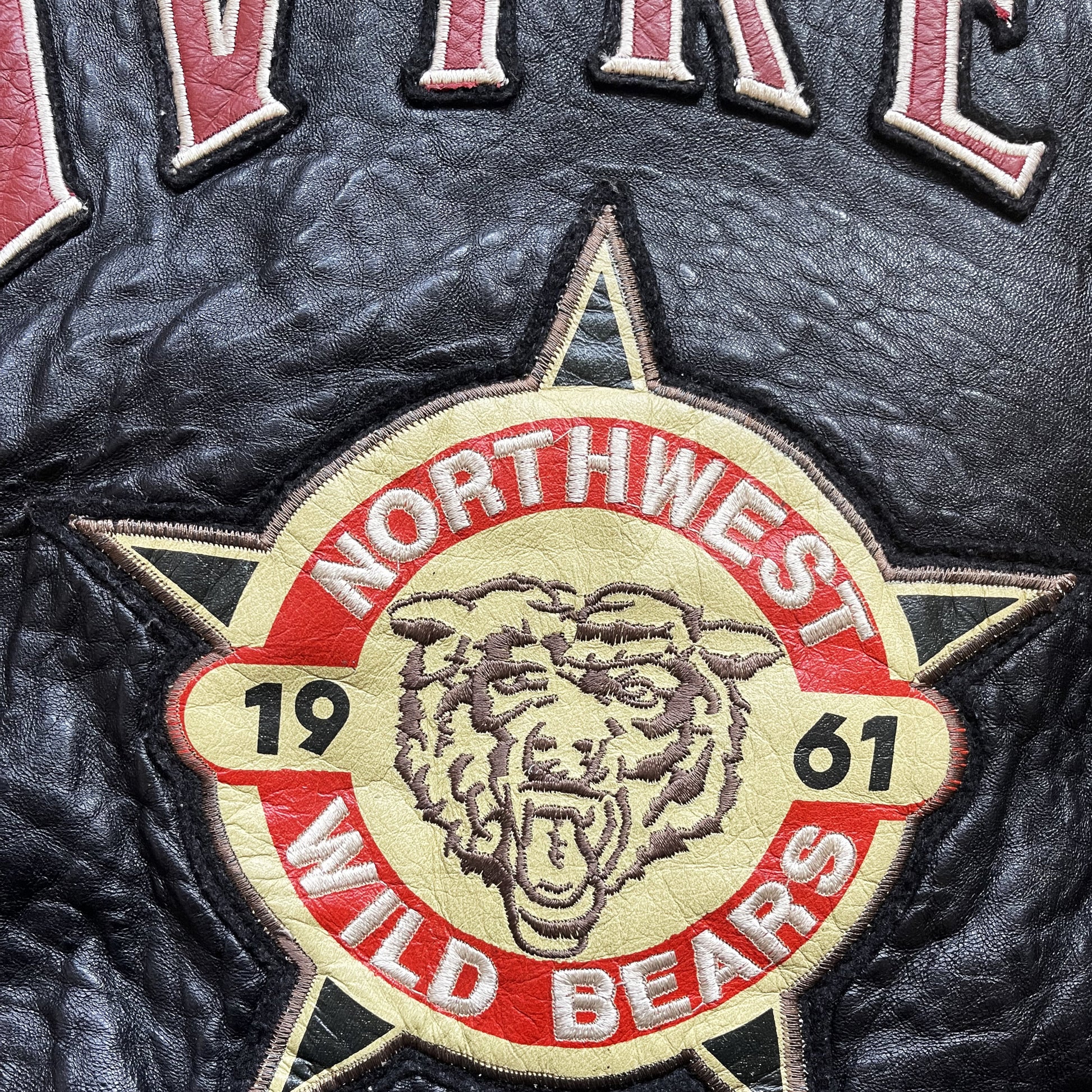 Avirex 'North West Wild Bears' Leather Varsity Jacket - M