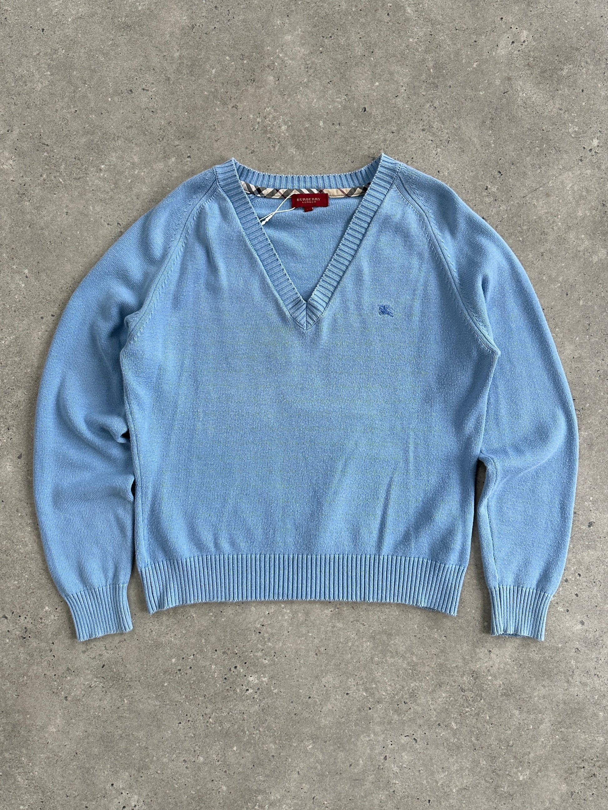 Burberry London 00s V Neck Cotton Logo Jumper - S