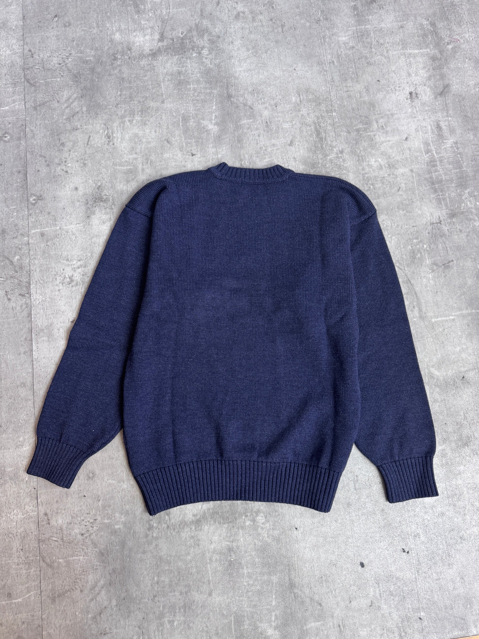 Celebrate heritage and vintage style with the Burberry 1990 Navy Knit Crewneck, a standout archival piece. Crafted from premium navy knit, this crewneck features a bold Union Jack embellishment, showcasing Burberry’s iconic attention to detail and classic British inspiration. Its timeless silhouette and luxurious construction make it perfect for layering or wearing as a statement piece.