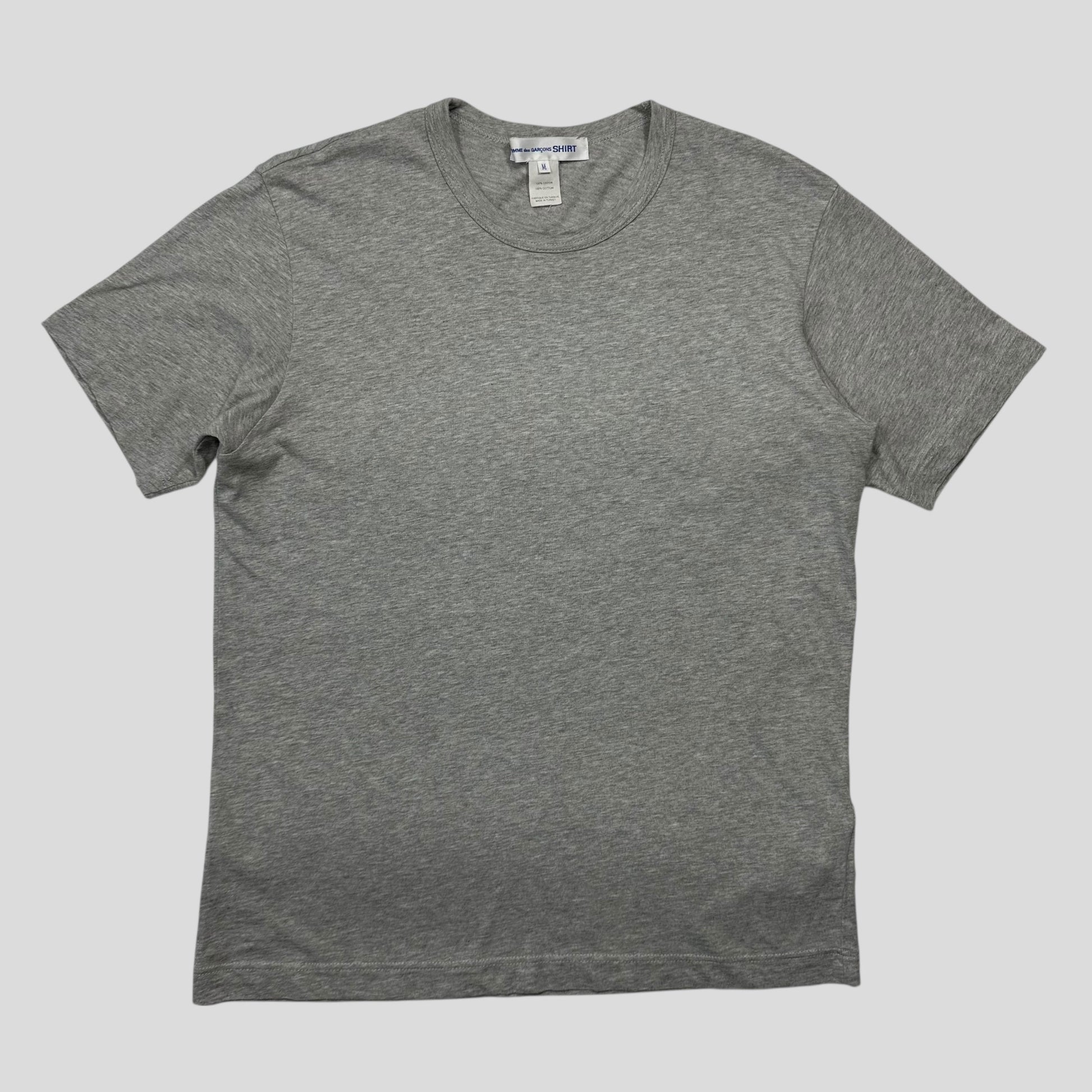 Comme Des Garçons SHIRT grey cotton fitted tee, nice lightweight and form fitting, spellout logo to back of neck.