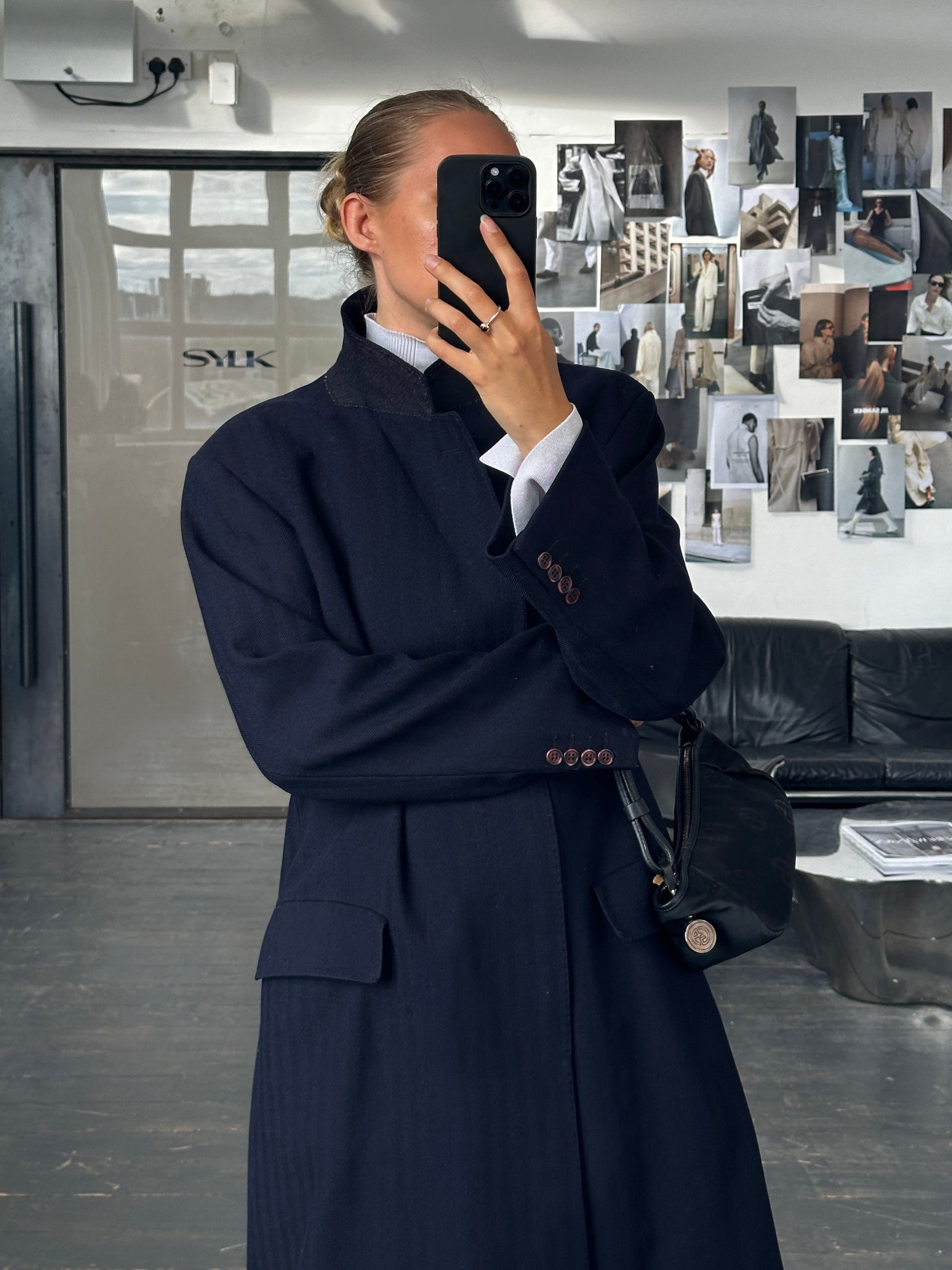 Christian Dior Monsieur late 1980s - 1990s overcoat in herringbone wool, crafted in the UK and fully lined with CD monogram.