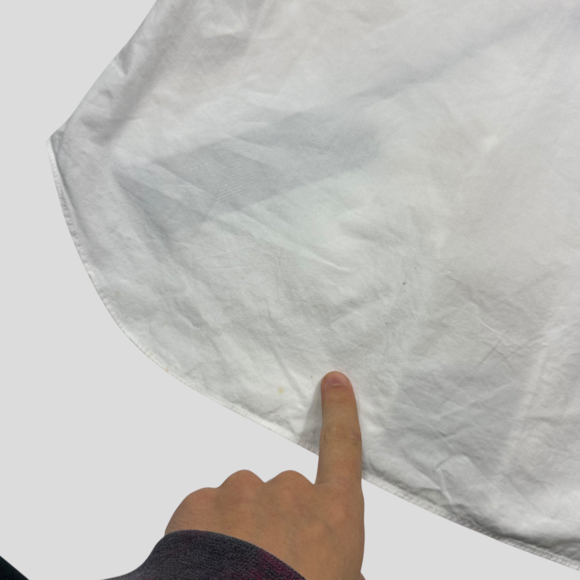Excellent condition, a couple tiny feint marks near the bottom of the shirt as shown, may wash out with product or dry clean I haven’t tried as they really are unnoticeable when wearing.