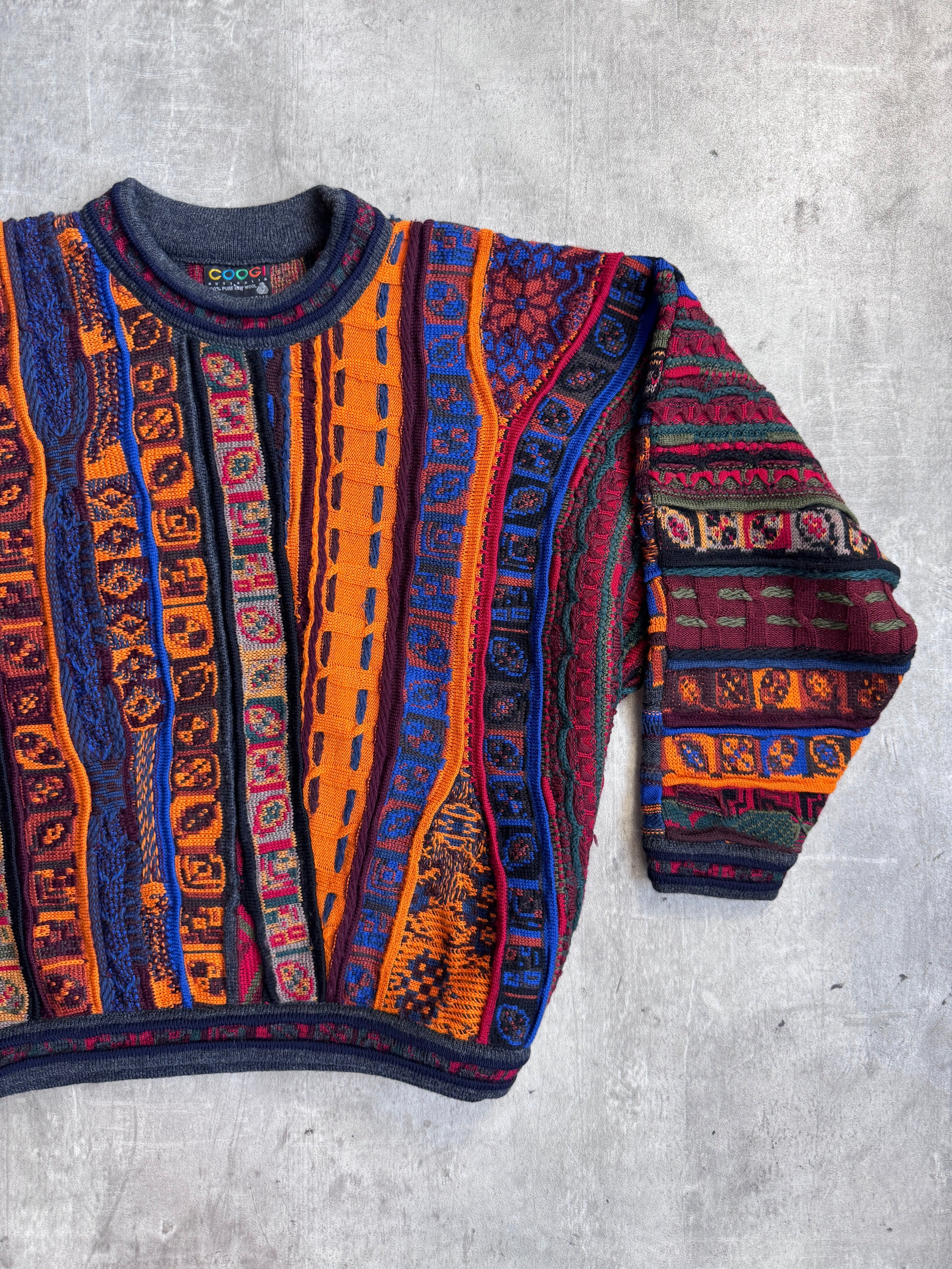 Make a bold, vibrant statement with the Coogi Multi Knit Heavyweight Patterned Sweater, a true icon of 90s streetwear and designer knitwear. Crafted from premium heavyweight yarns, this sweater features Coogi’s signature intricate, colorful patterns, delivering both warmth and unmatched visual impact.