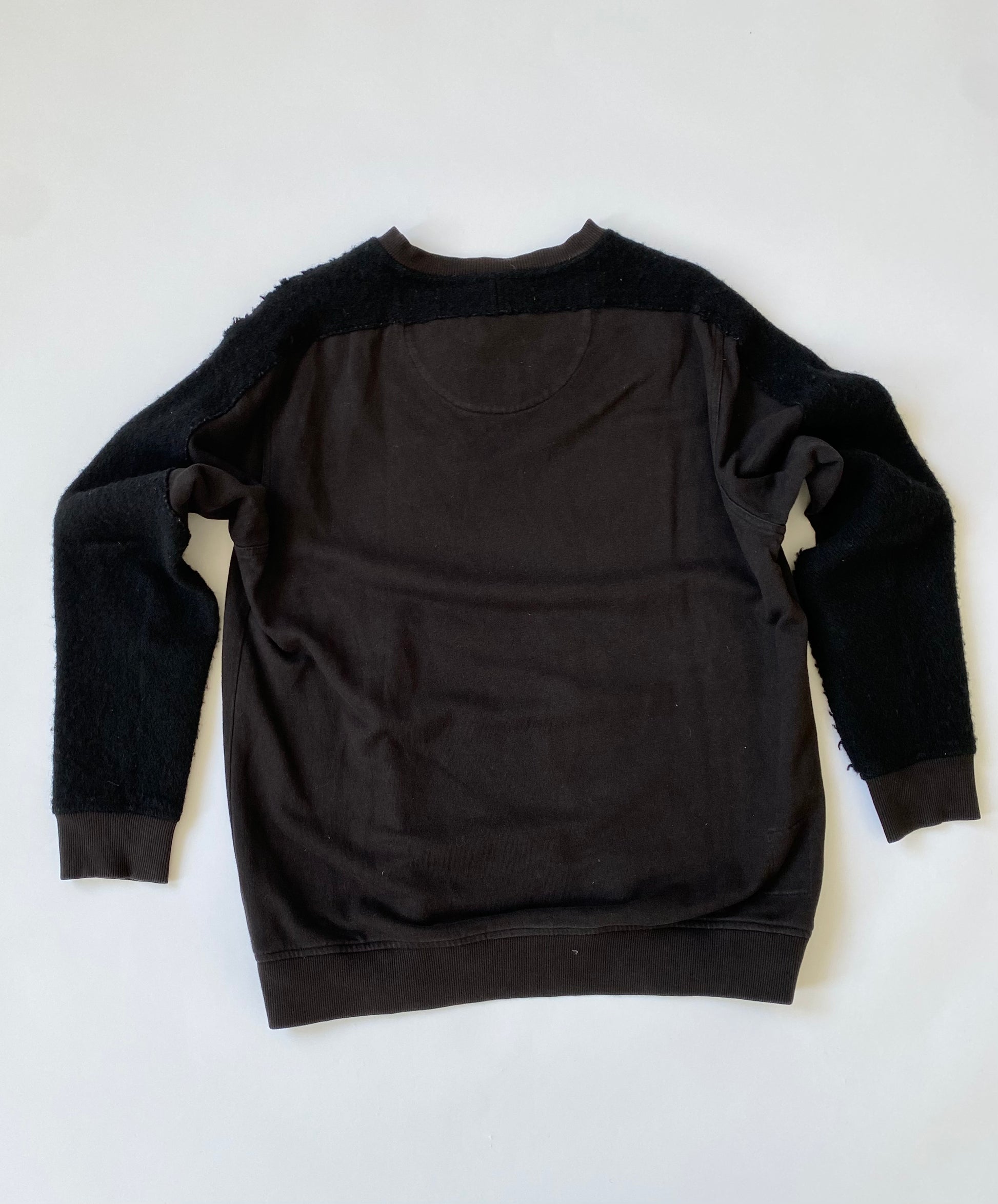Maharishi Fleece Detailing Sweatshirt in Black. 100% organic cotton relaxed fit sweatshirt with fleece detailing on sleeves and shoulders.
