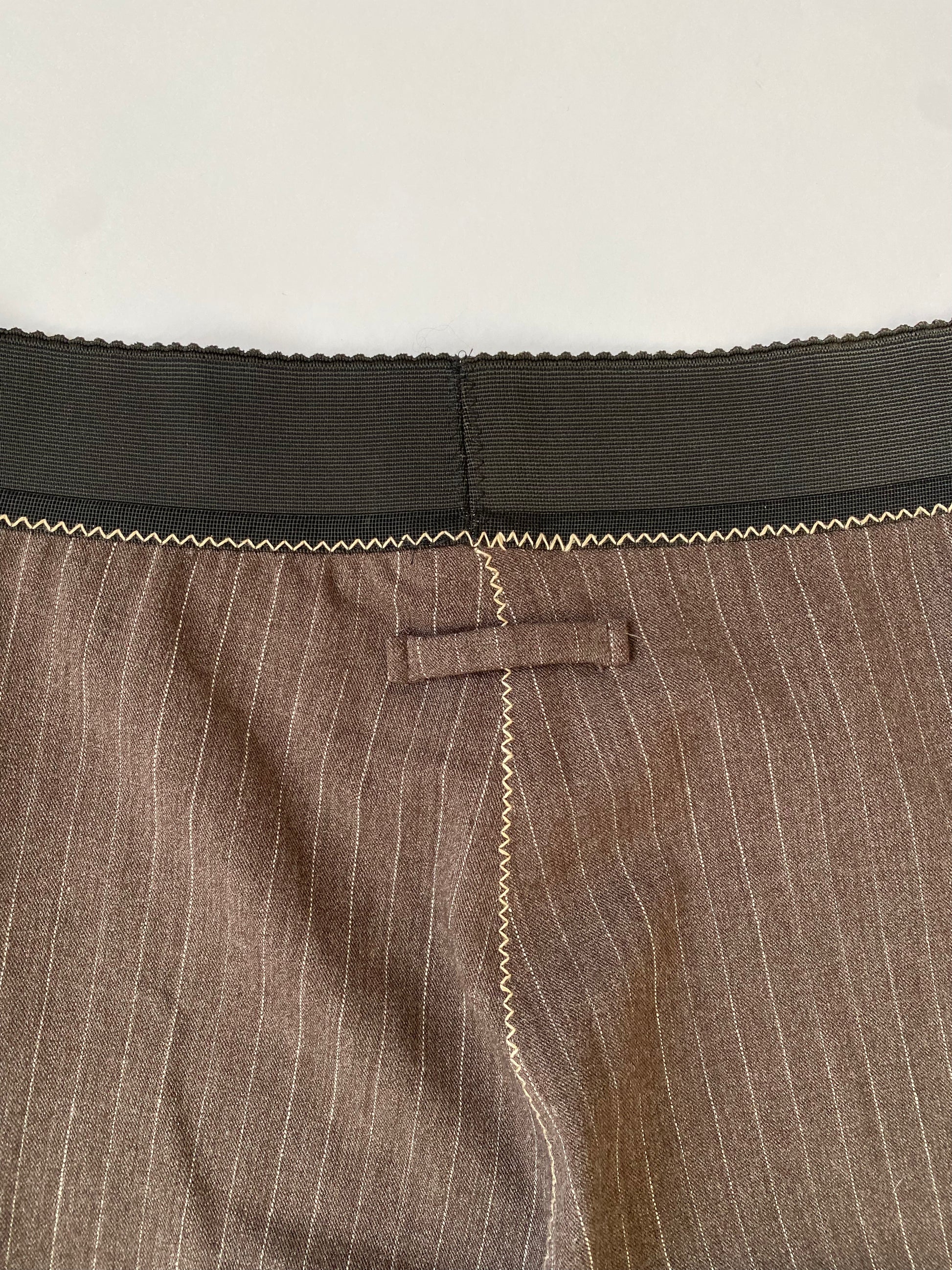 Jean Paul Gaultier Femme Stretch Pants. Gorgeous pin stripe brown leggings, with cuffed ankles.