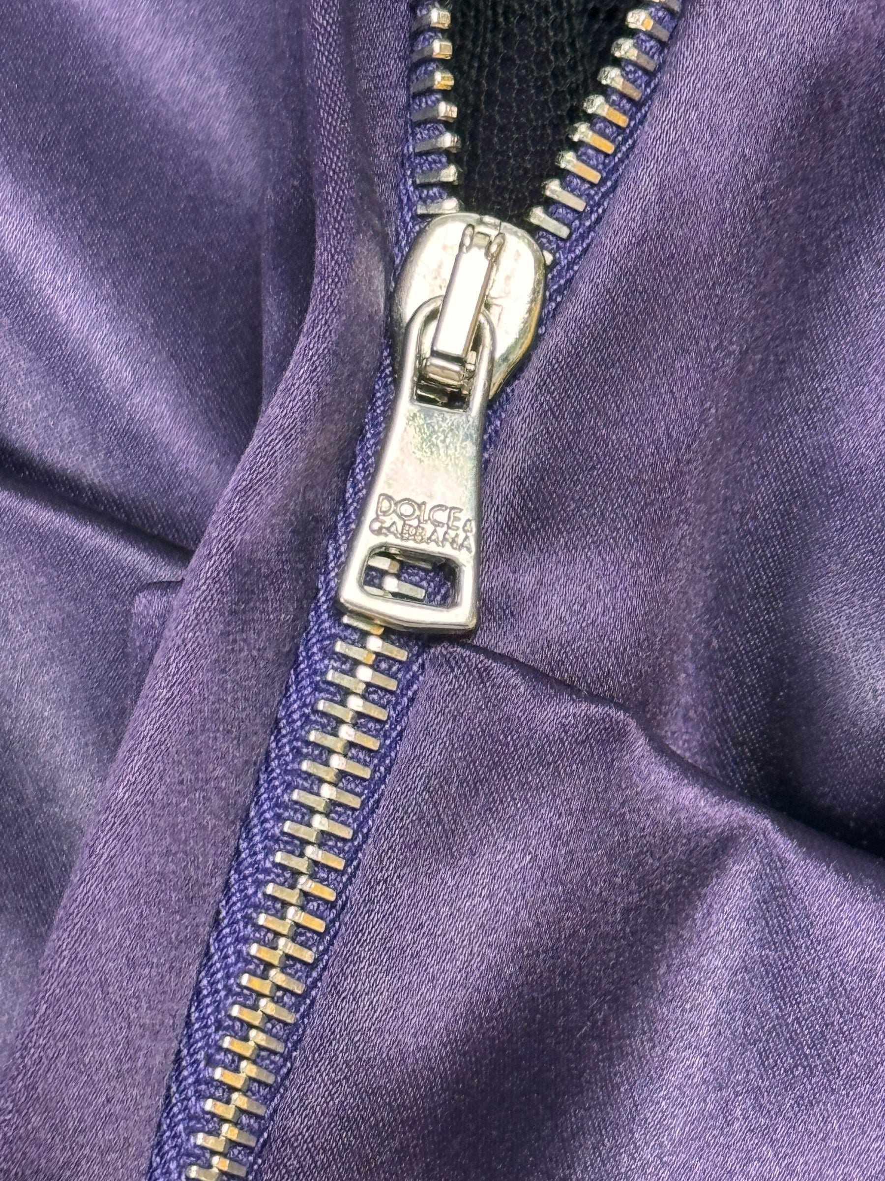 Dolce & Gabbana F/W 2009 corseted deep purple ruched satin gown. Size S (UK8/10). All details below: