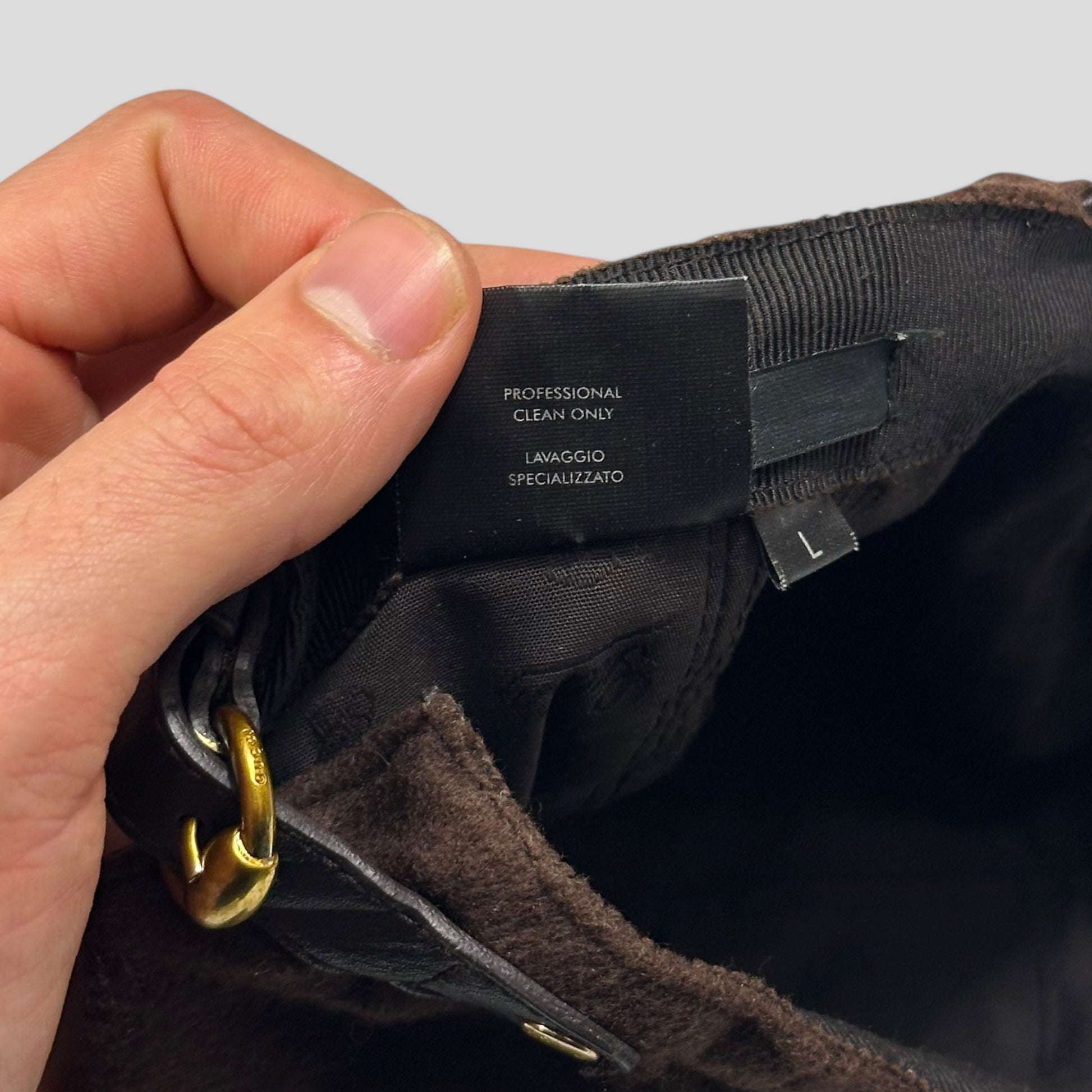 Very rare 2000’s Gucci by Tom Ford brown cashmere and wool blend equestrian riding style baker boy hat, beautifully crafted with Golden Gucci G and branded button on top and back, leather detailed rim and buckle at back.