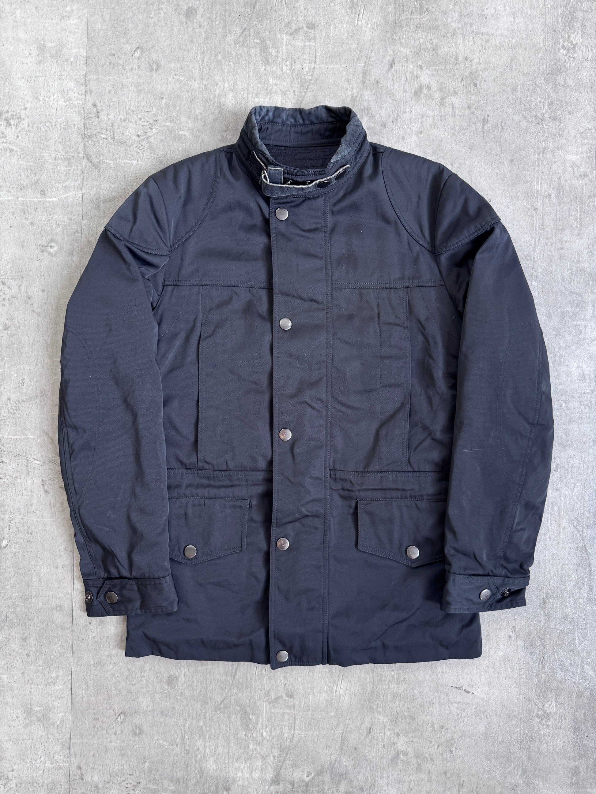 From Gucci’s Autumn/Winter 2021–2022 collection, this Café Racer Moto Quilted Utility Jacket reinterprets classic biker aesthetics through the brand’s luxury Italian craftsmanship. Combining performance-inspired detailing with refined tailoring, this piece captures Gucci’s fusion of heritage and modern edge under the creative direction of Alessandro Michele.