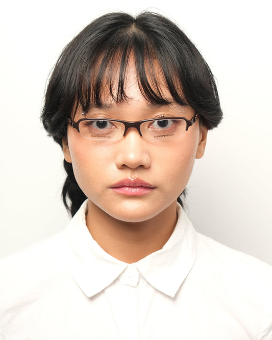 Curved wraparound frame (1995–2000) in ivory colour with a continuous front that flows into the temples. The top line arches gently while the bottom line dips slightly toward the bridge. Excellent condition. Comes with an unbranded soft sleeve.