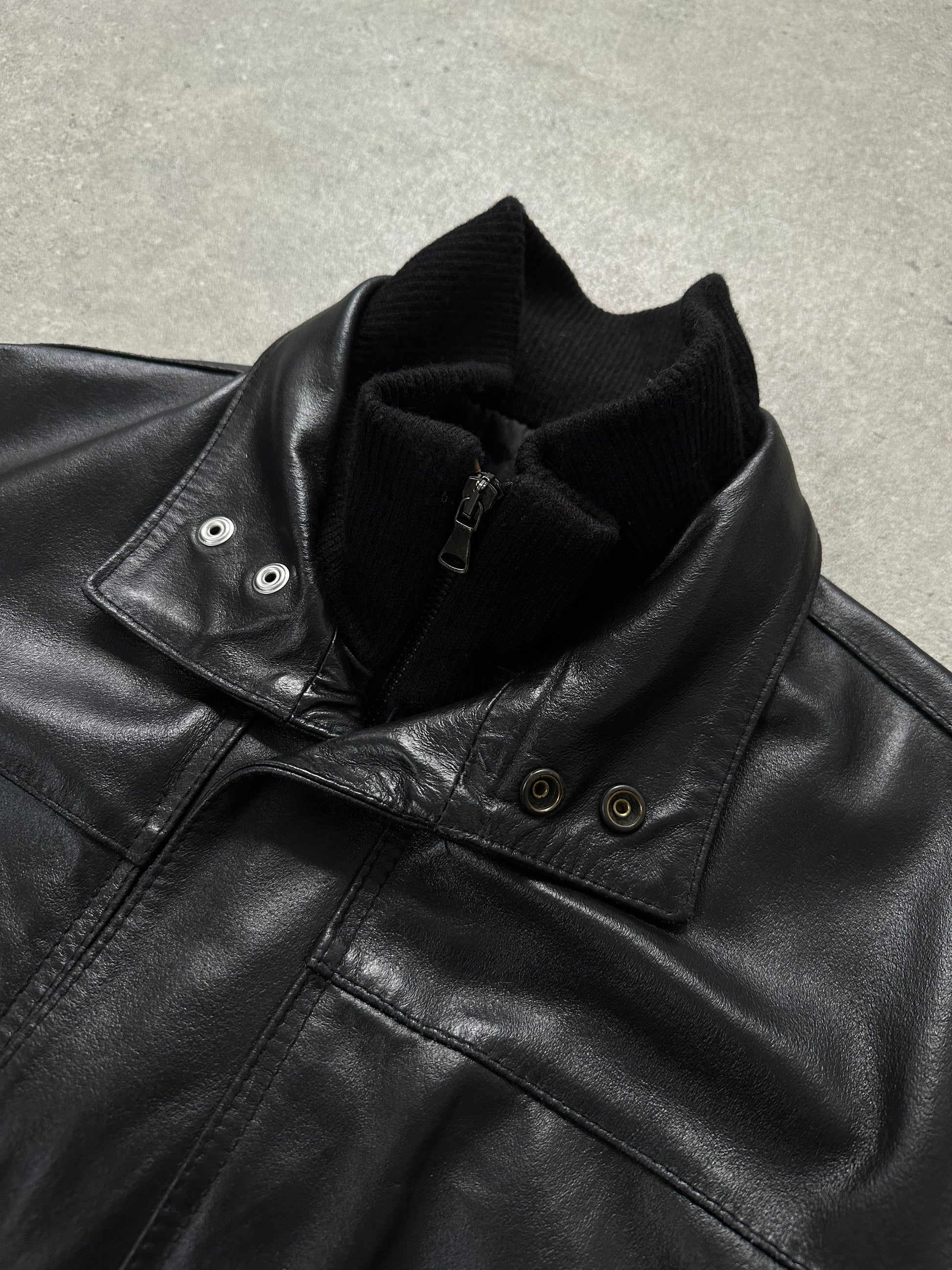 Italian Vintage 1990s Funnel Neck Leather Trench Coat - XL