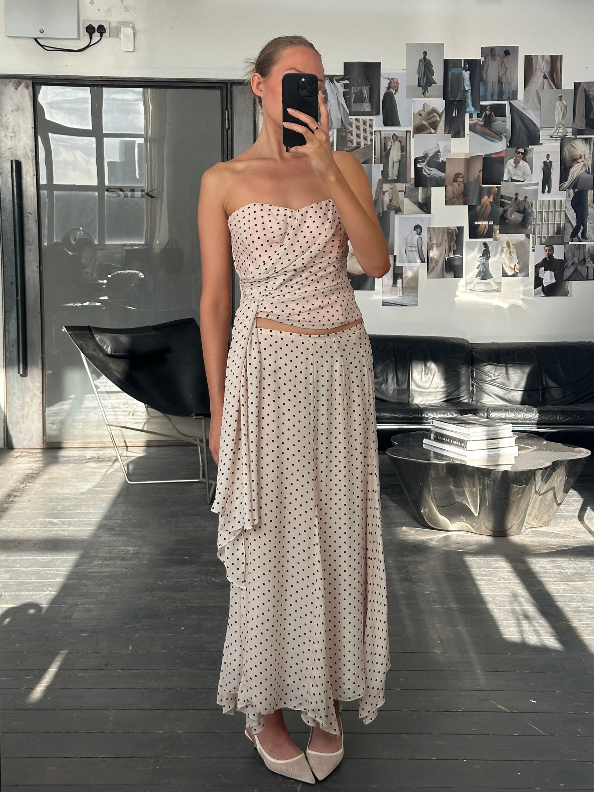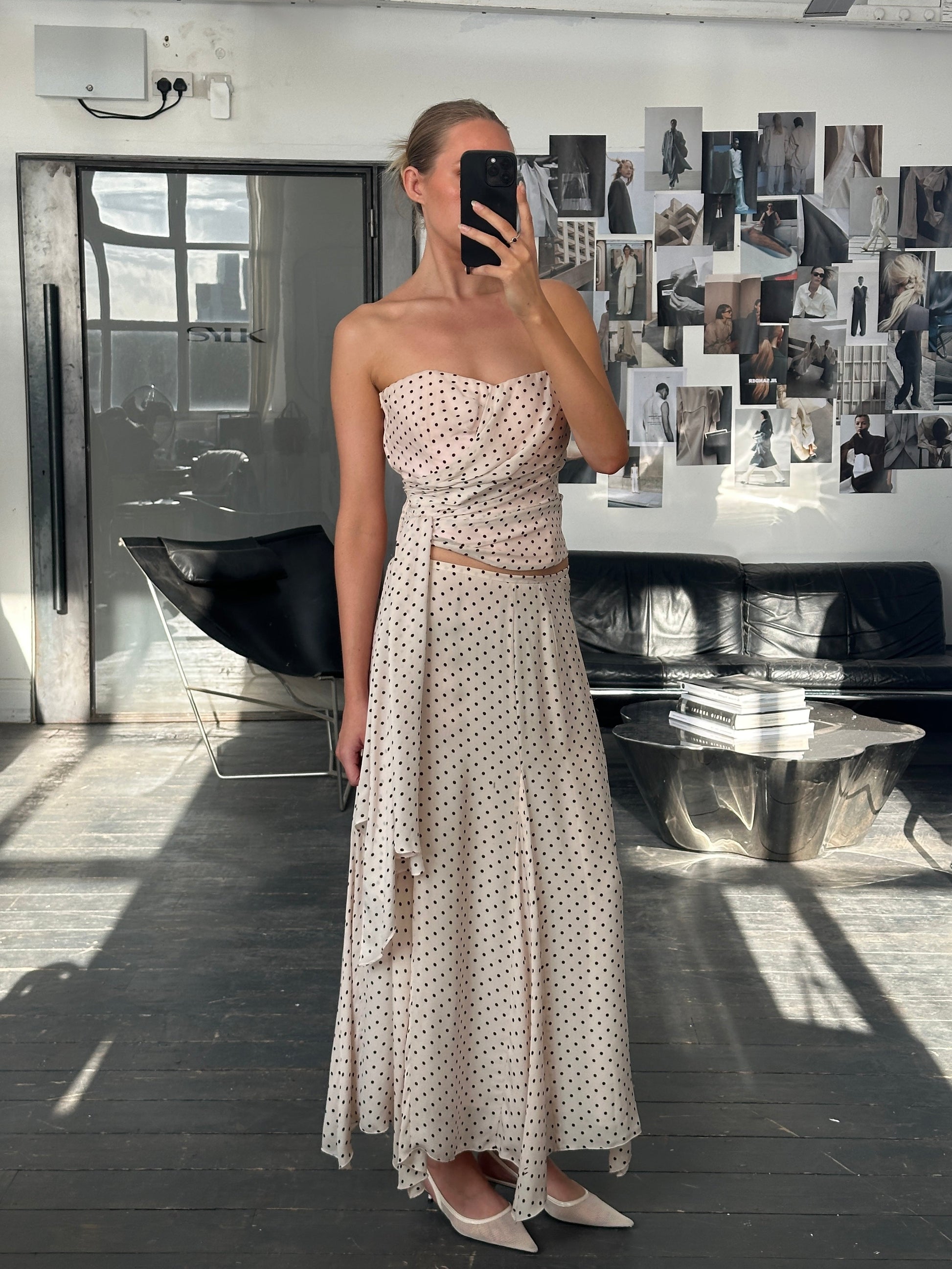 Jaeger 2000s Pure Silk Polkadot Two Piece Skirt Top Set - L/W28