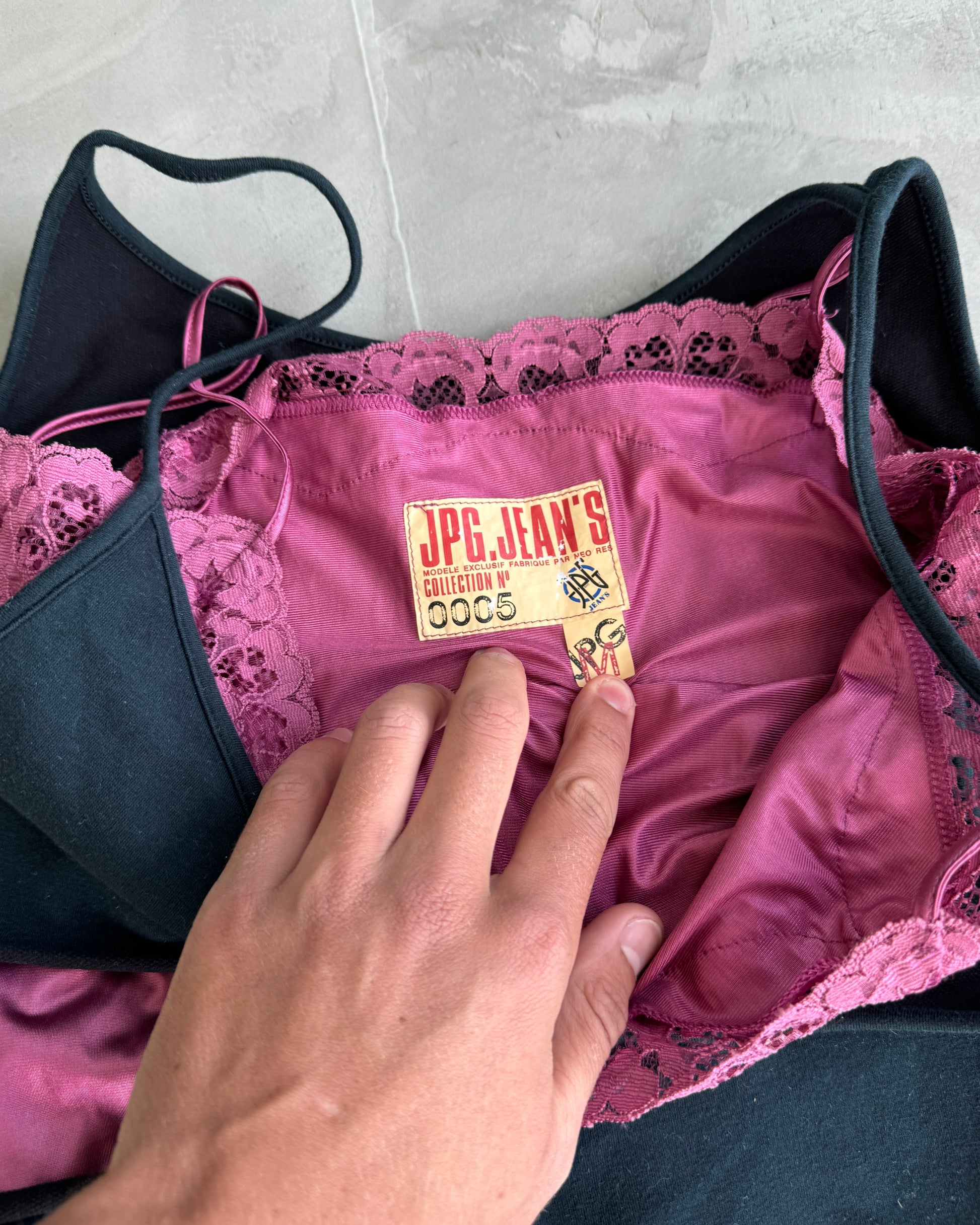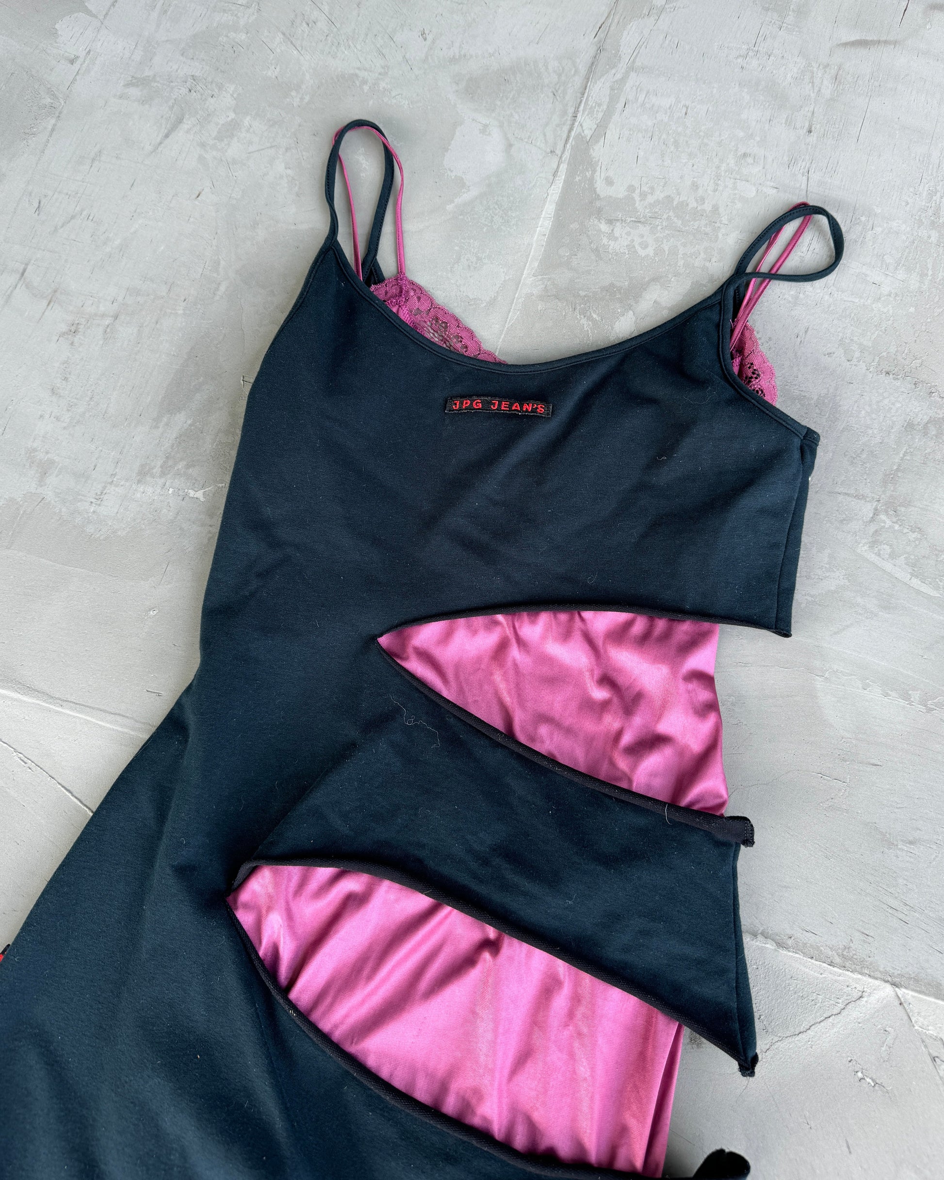 Cut out dress with attached lace slip layer from Jean Paul Gaultier’s Jean’s Collection.