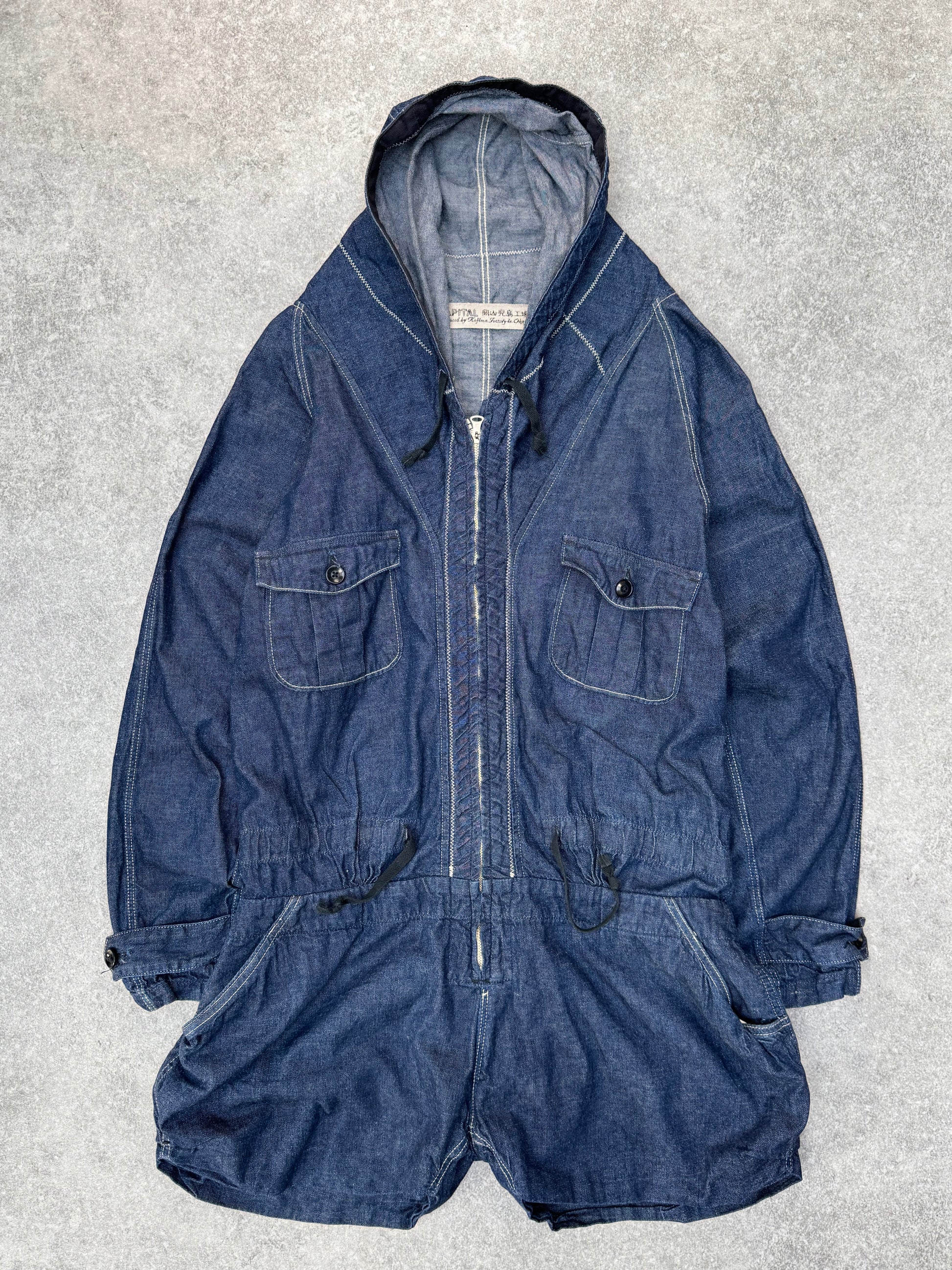 Kapital Denim Hooded Long Sleeve Drawstring Playsuit