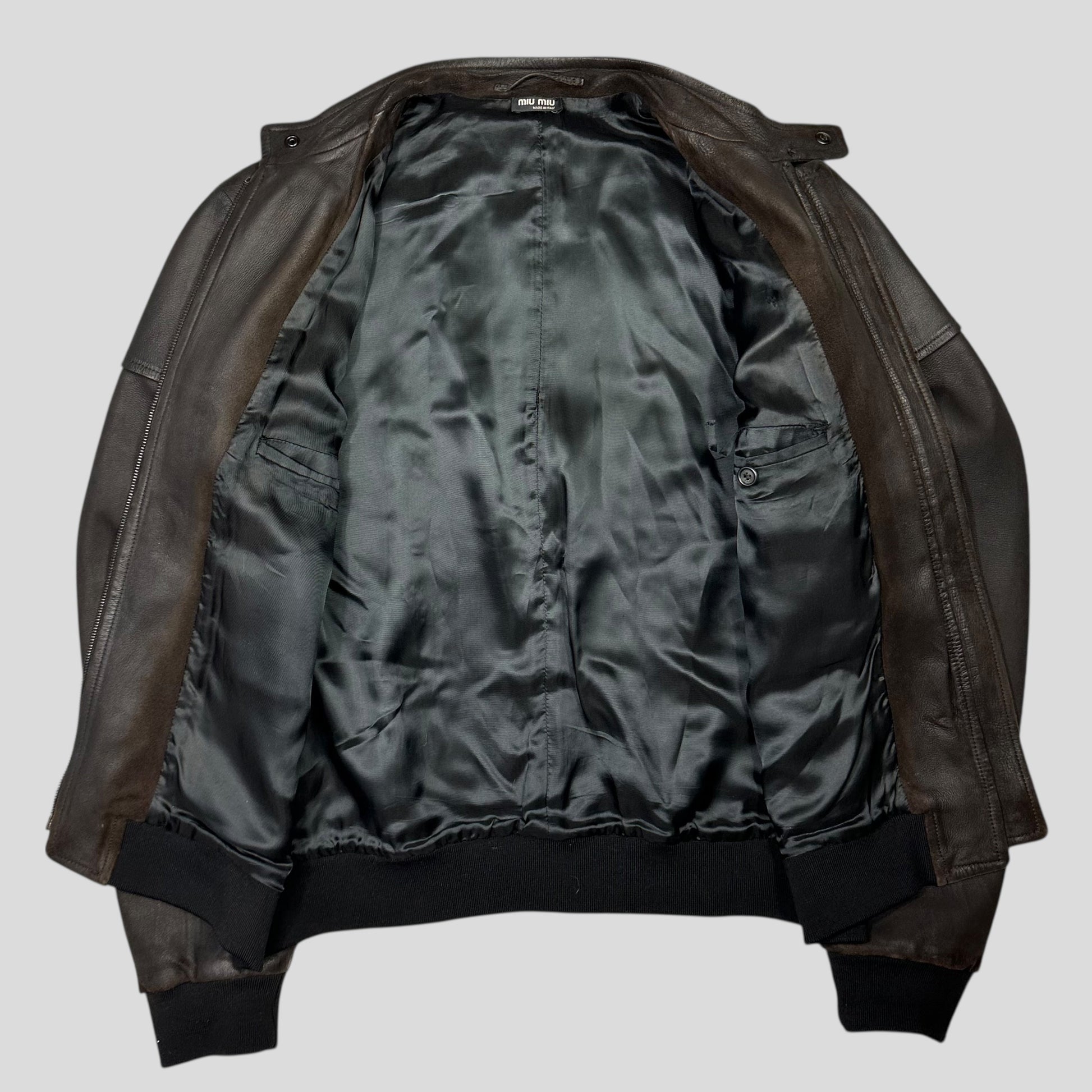 Miu Miu 2008 Lambskin Suede Leather Asymmetrical Bomber Jacket - IT52 (M/L)