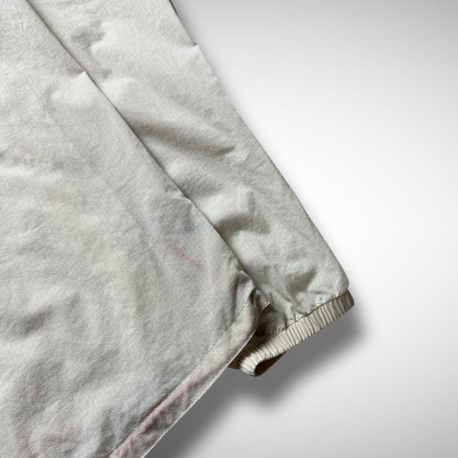 A lightweight, technical running piece designed by Jun Takahashi and made in Japan. Constructed with a translucent ripstop shell, it features exposed interior paneling with ergonomic seams, dual zip pockets and red pull-tabs, and ventilation eyelets at the underarms for breathability.