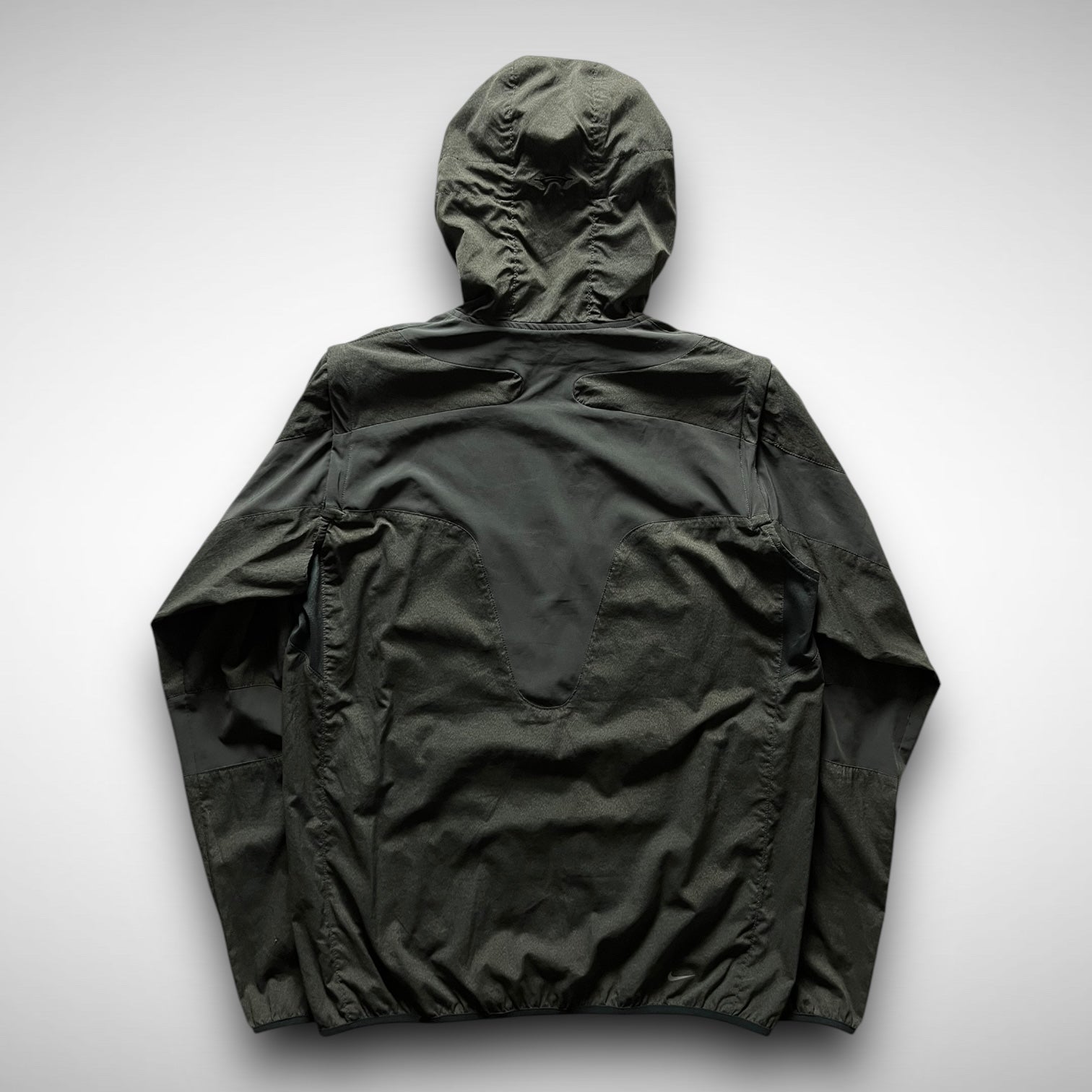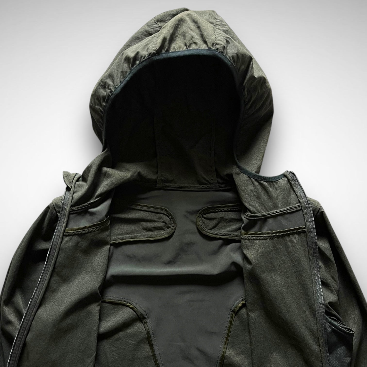 Part of the early Gyakusou collections designed by Jun Takahashi, this jacket showcases Nike’s technical innovation fused with UNDERCOVER’s refined aesthetic. Made in Japan, it features a lightweight, water-repellent nylon shell with stretch panels for mobility and breathability.