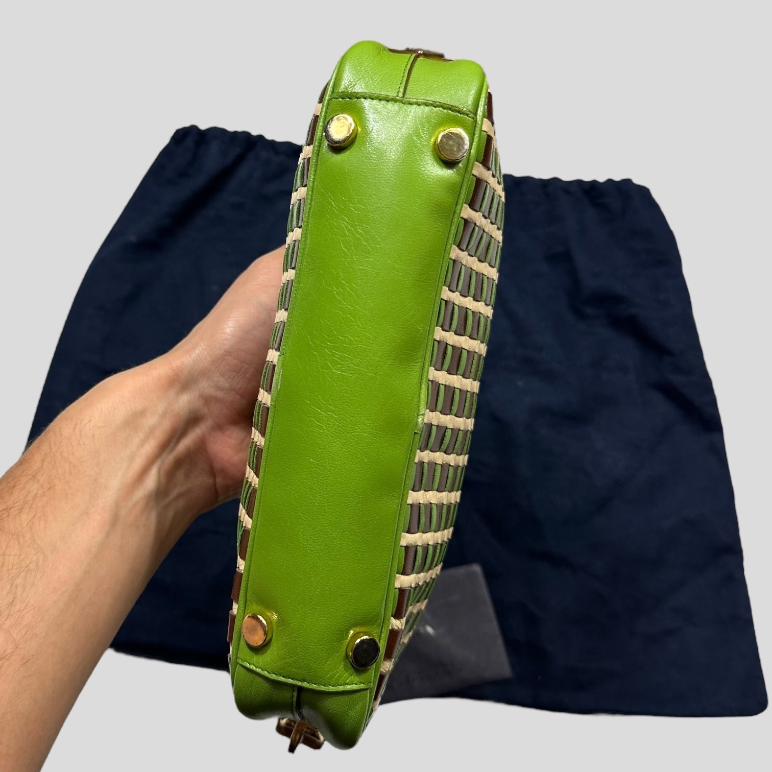 Prada 2001 Mini Top Handle Leather Woven Bag + Cards & Dustbag