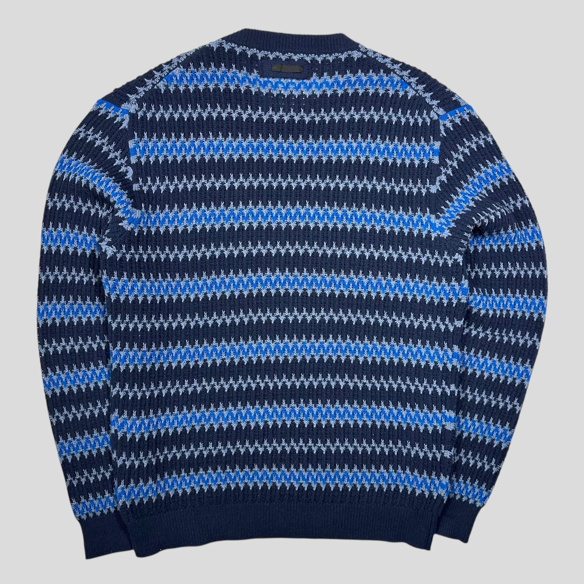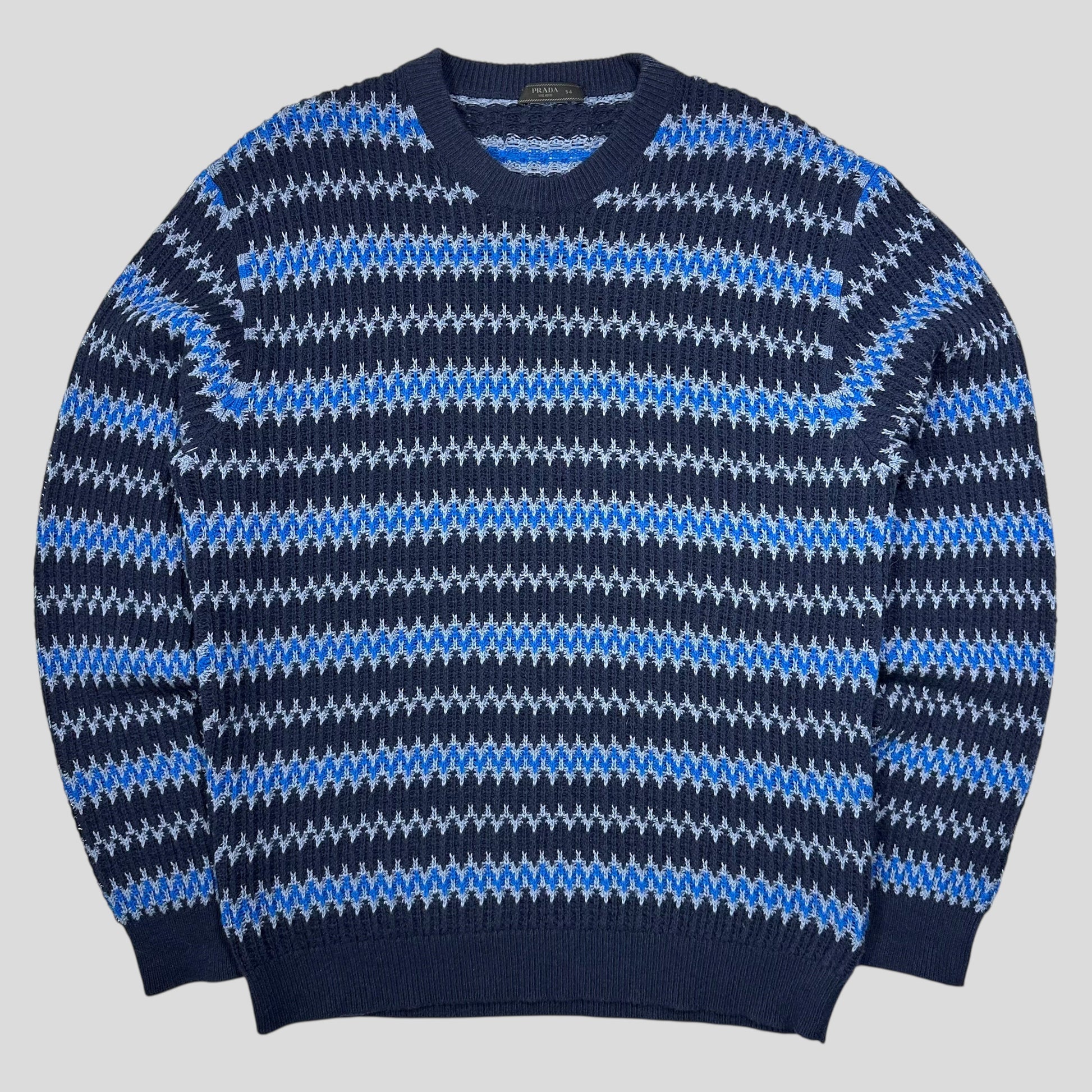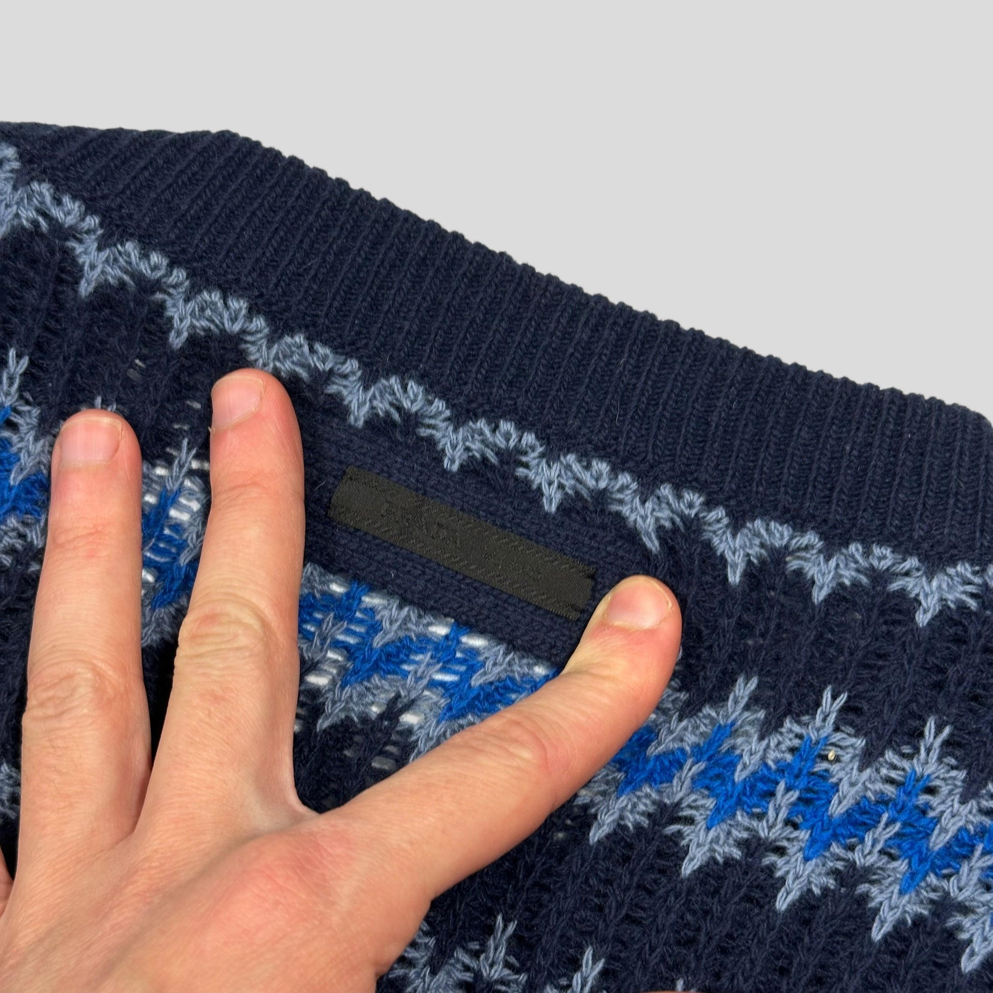 Beautiful 2019 Prada mainline chunky loose gauge all over lightning fair isle design knitted jumper, Prada black tab logo to back neck, incredible quality made in Italy from a 30-70 cashmere and wool blend.