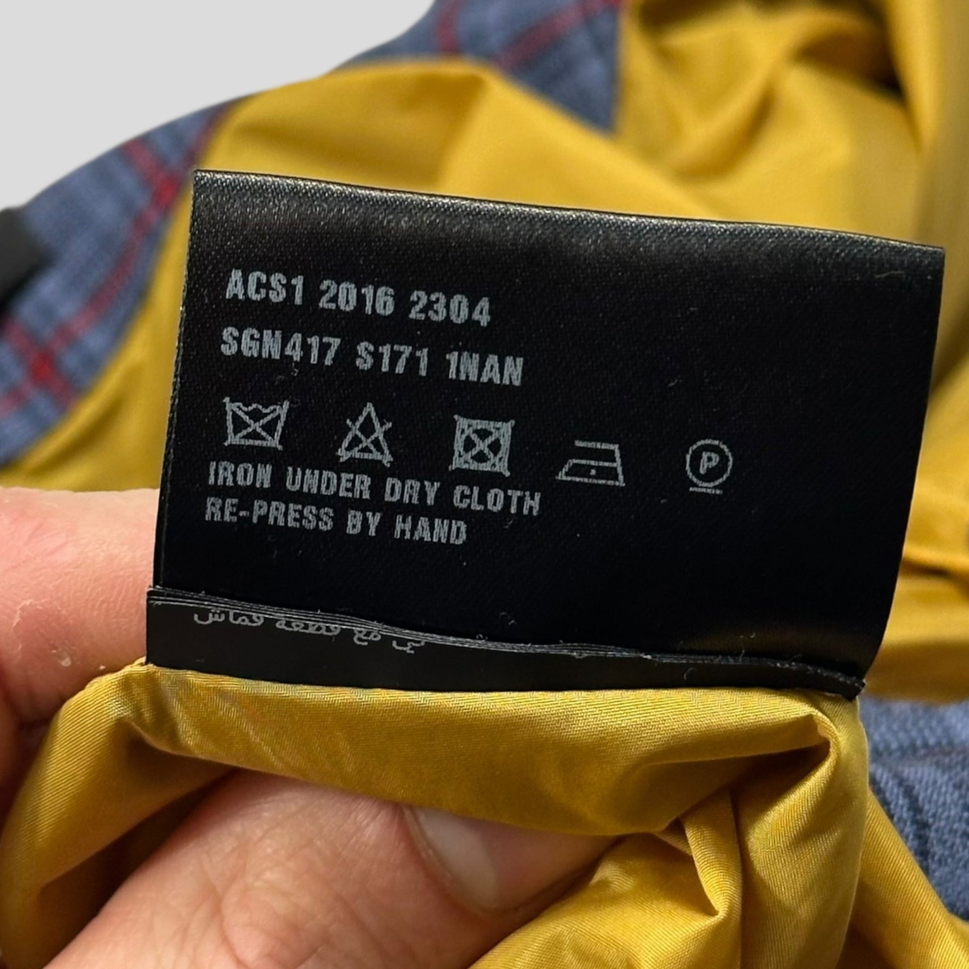 Unique yellow wool edging inside the lapel of the zip, yellow silky nylon suit like lining.