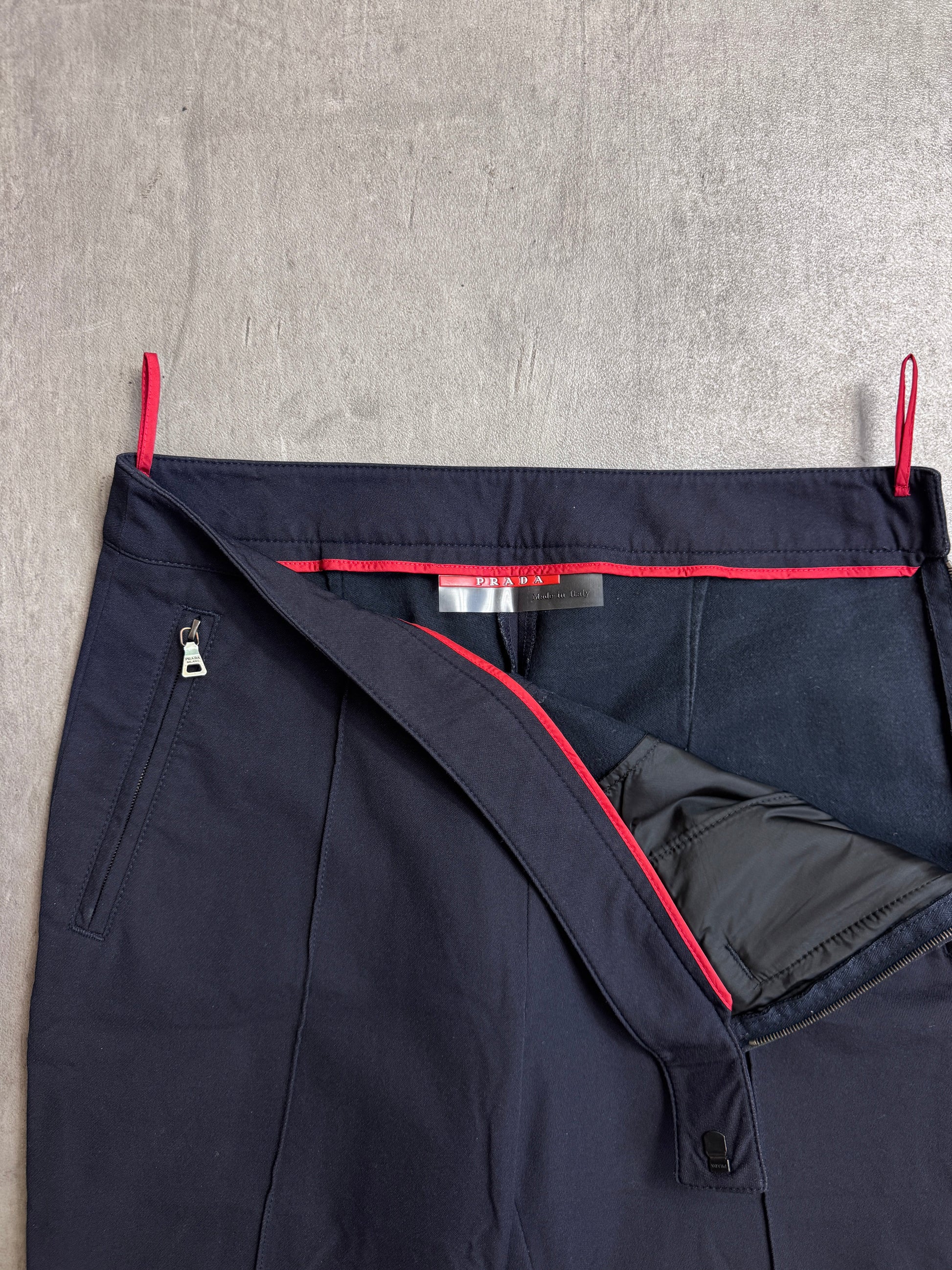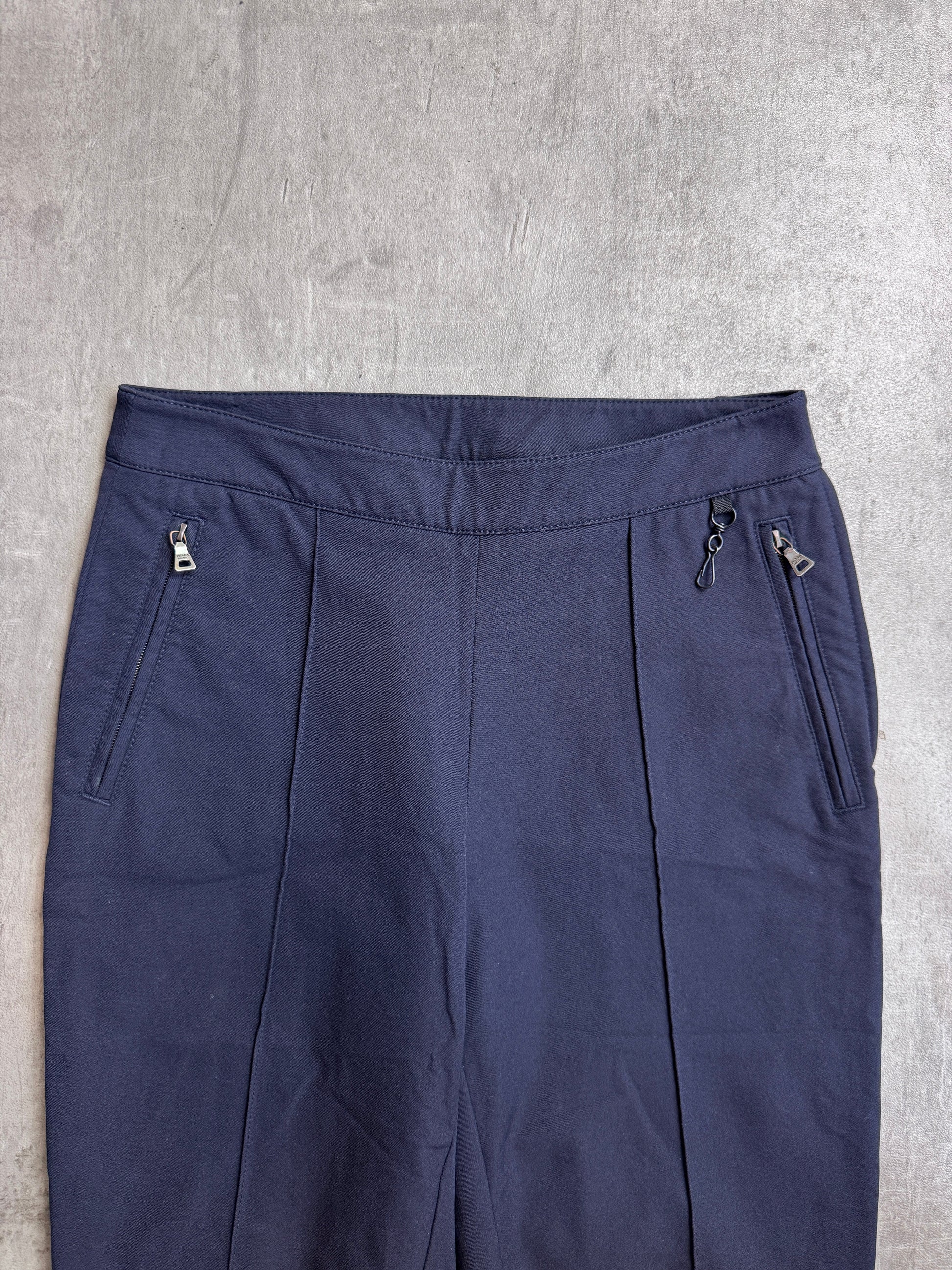 Effortlessly combining minimalism with technical sophistication, these Prada Navy Stretch Capri’s embody the brand’s distinctive balance of form and function. Tailored in a sleek cotton-blend stretch fabric, they offer a streamlined silhouette with an elegant cropped finish.