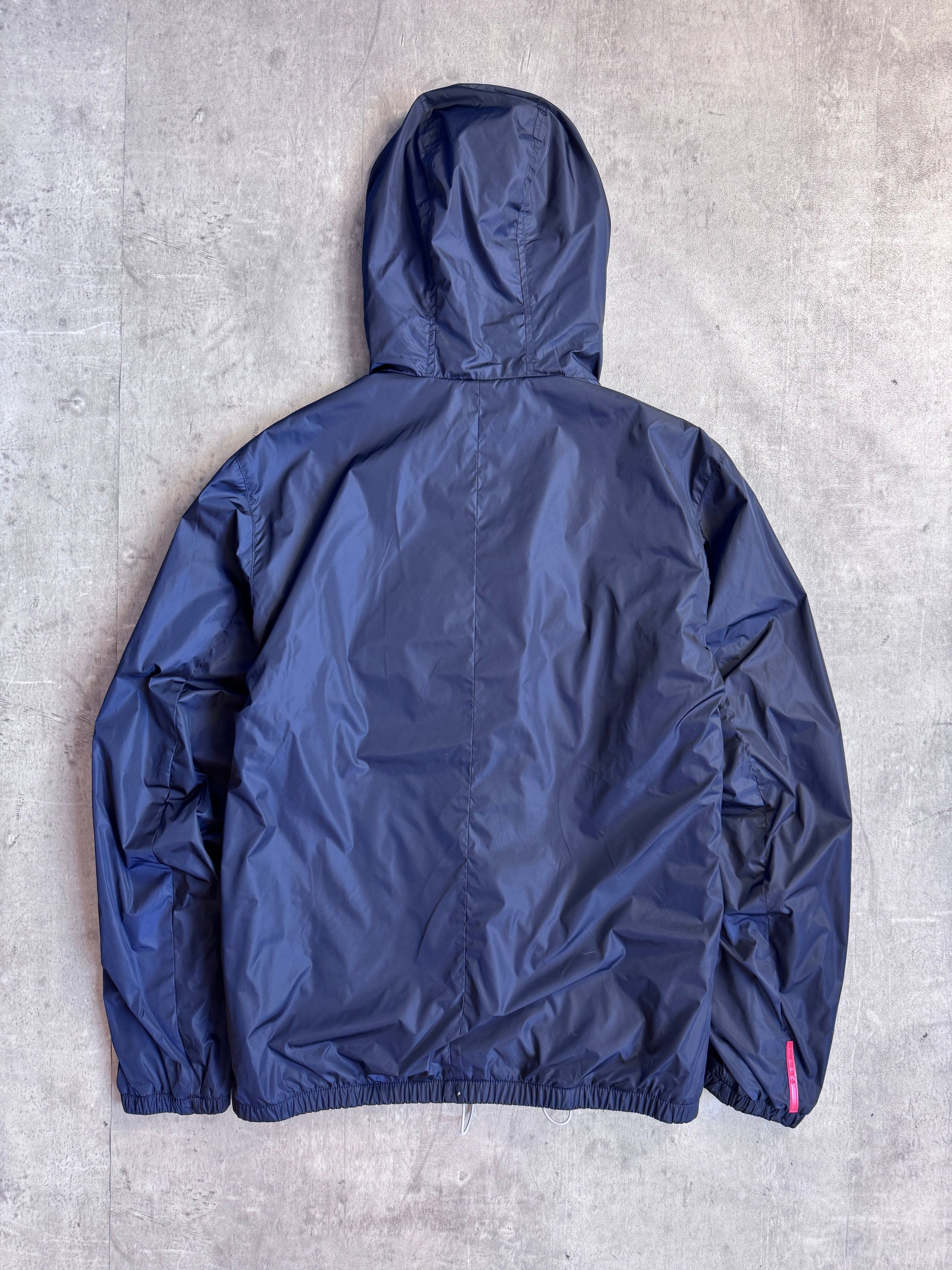 A standout Prada Sport outerwear piece that fuses technical performance with the label’s sleek, utilitarian design language. This reversible hybrid hooded jacket gives you two distinct looks in one: one side clean and minimal for everyday wear, the other leaning more technical with texture/structure that feels straight out of Prada’s late-90s/00s sport archive.