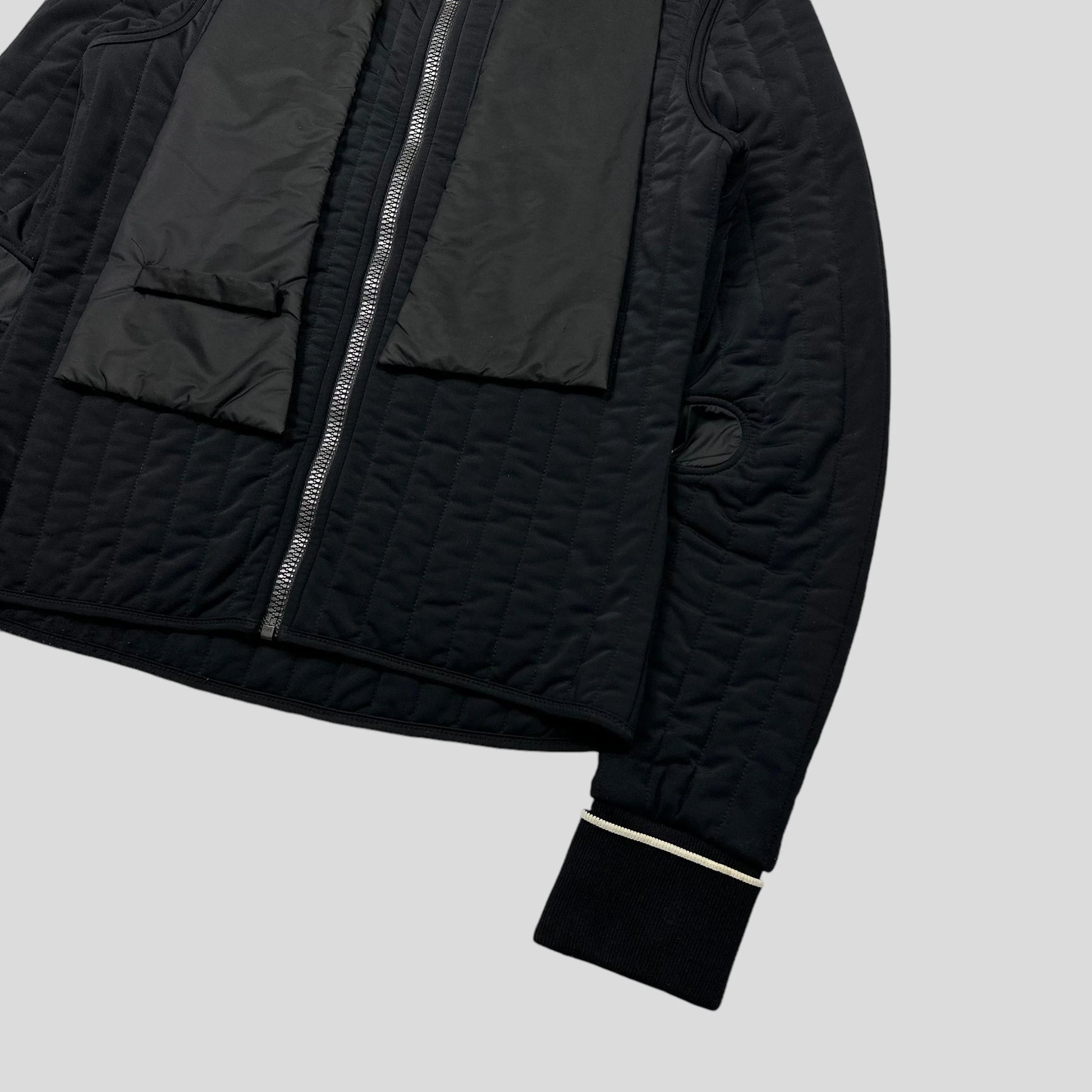 Very rare spring summer 2000 lightweight quilted jacket with attached nylon scarf, unique piece from an iconic season, red logo tab to hip, striped roll cuffs, RIRI zipper.