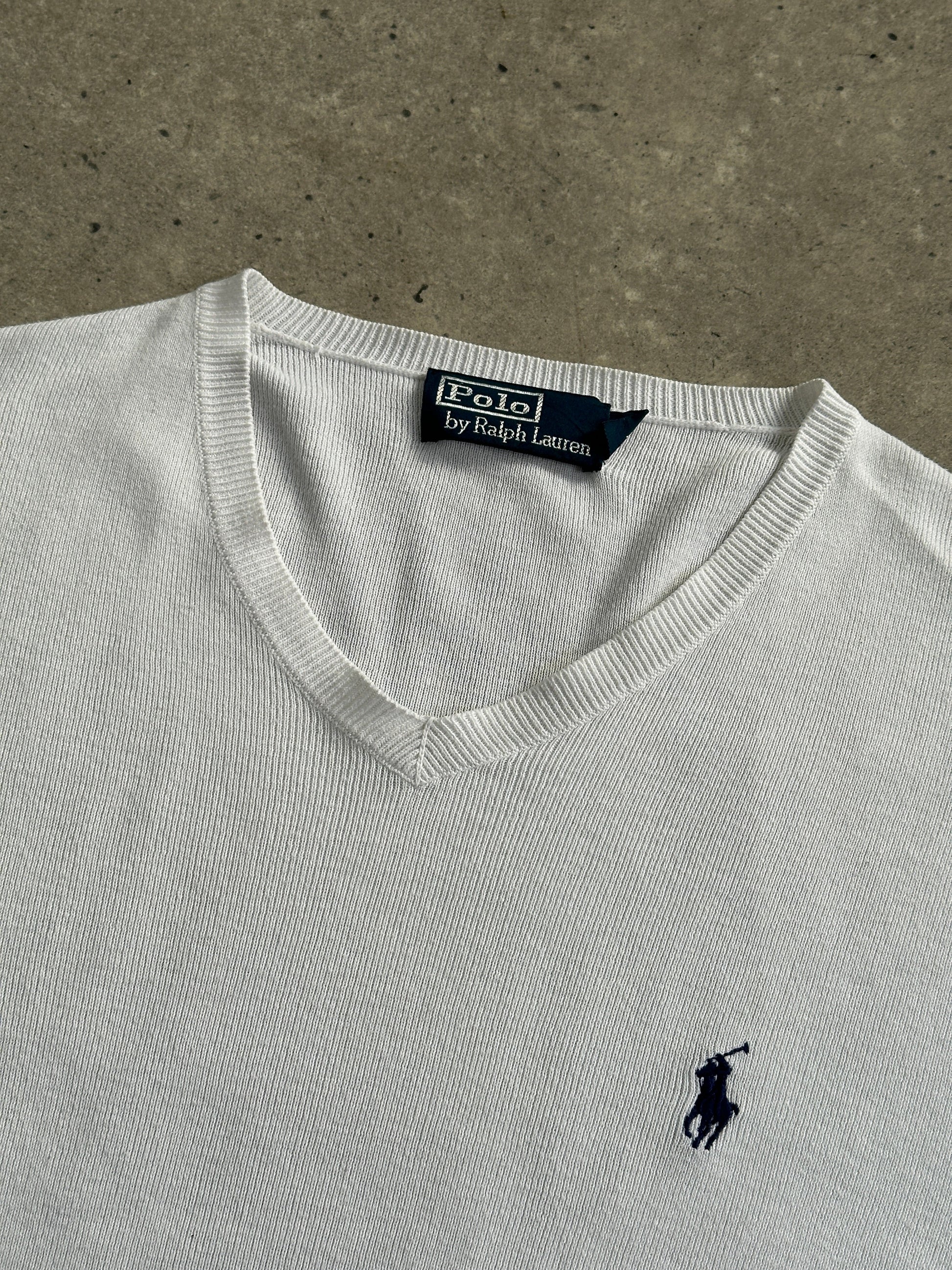 Ralph Lauren Pure Cotton Logo V Neck Jumper - M