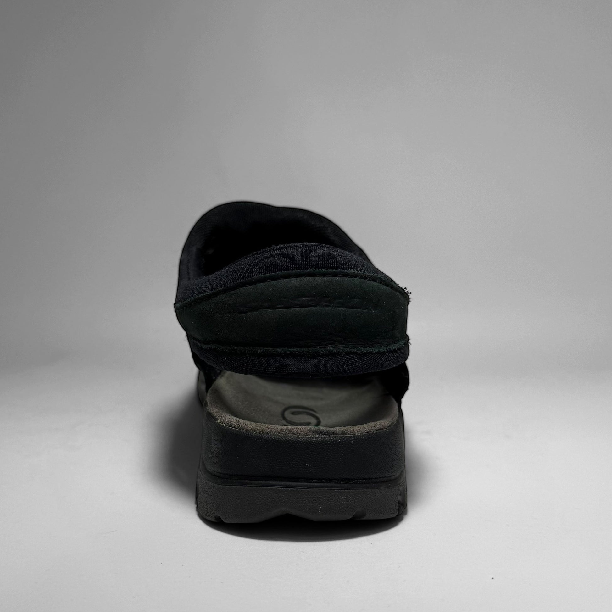 Constructed from black suede and breathable mesh, it features cut-out panels for ventilation, a neoprene collar for a secure fit, padded heel for comfort and a Contagrip outsole for traction. A technical hybrid design blending outdoor utility with casual comfort.