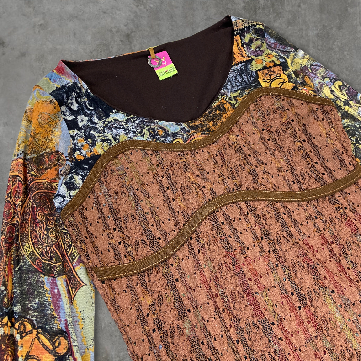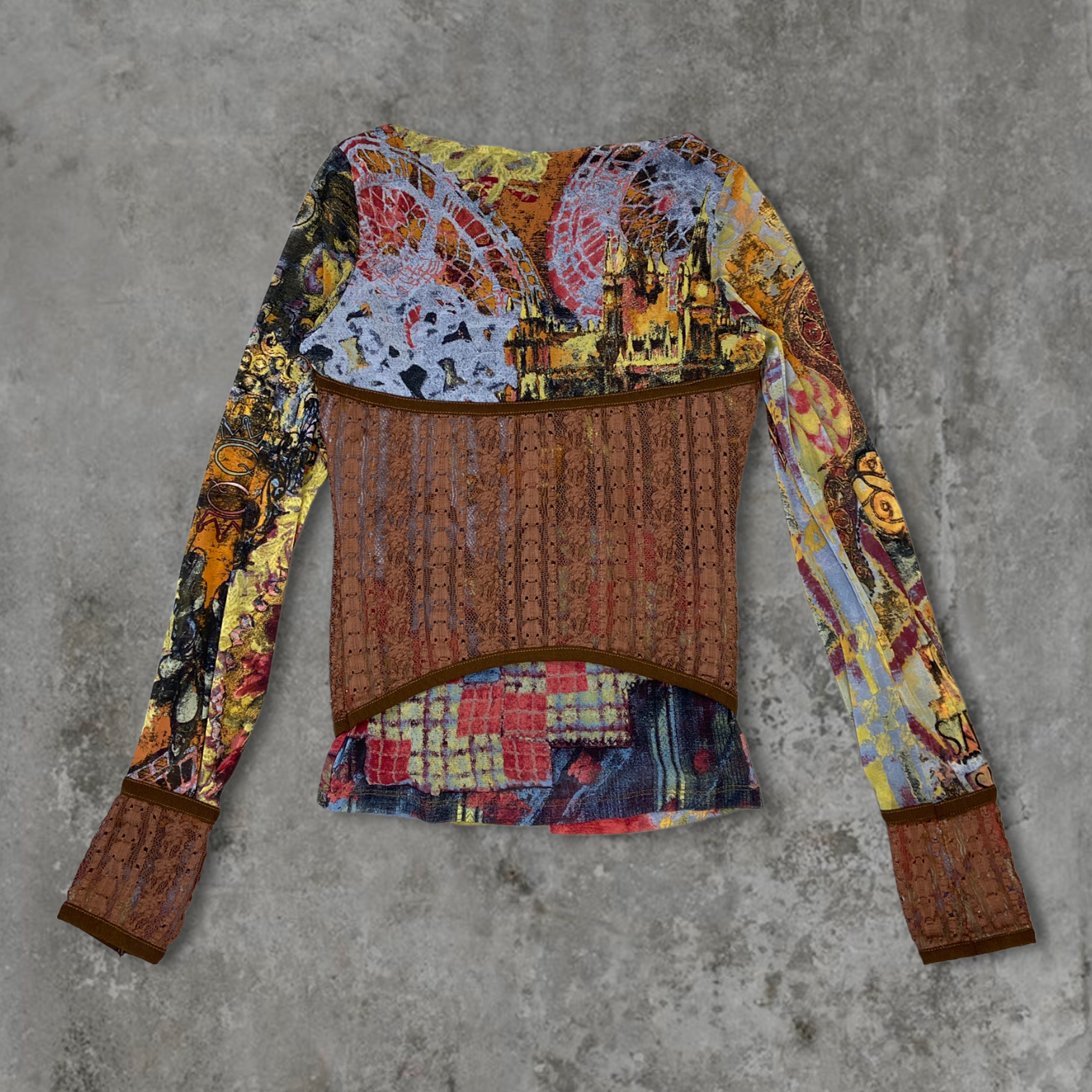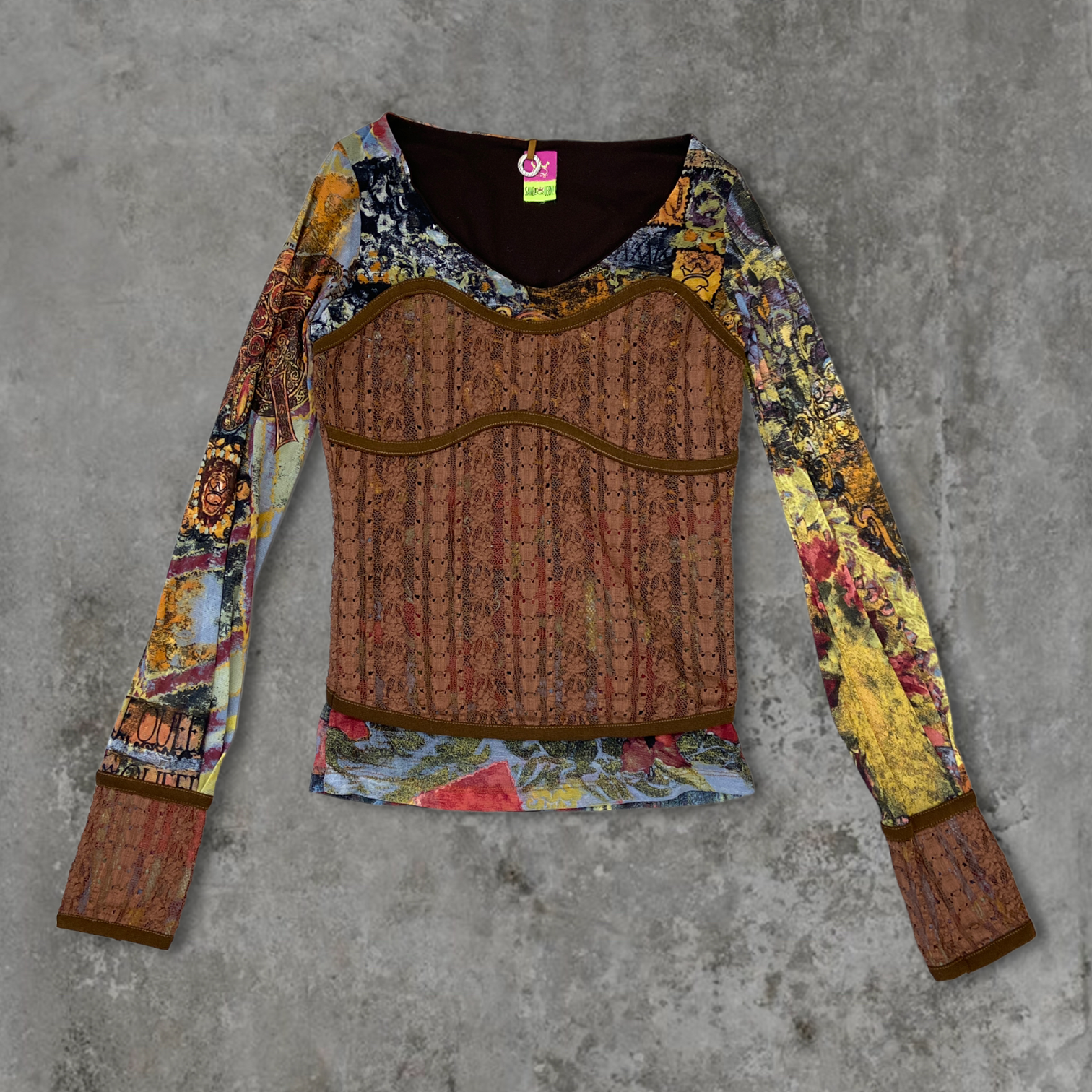 SAVE THE QUEEN CORSET LACE MESH TOP - L