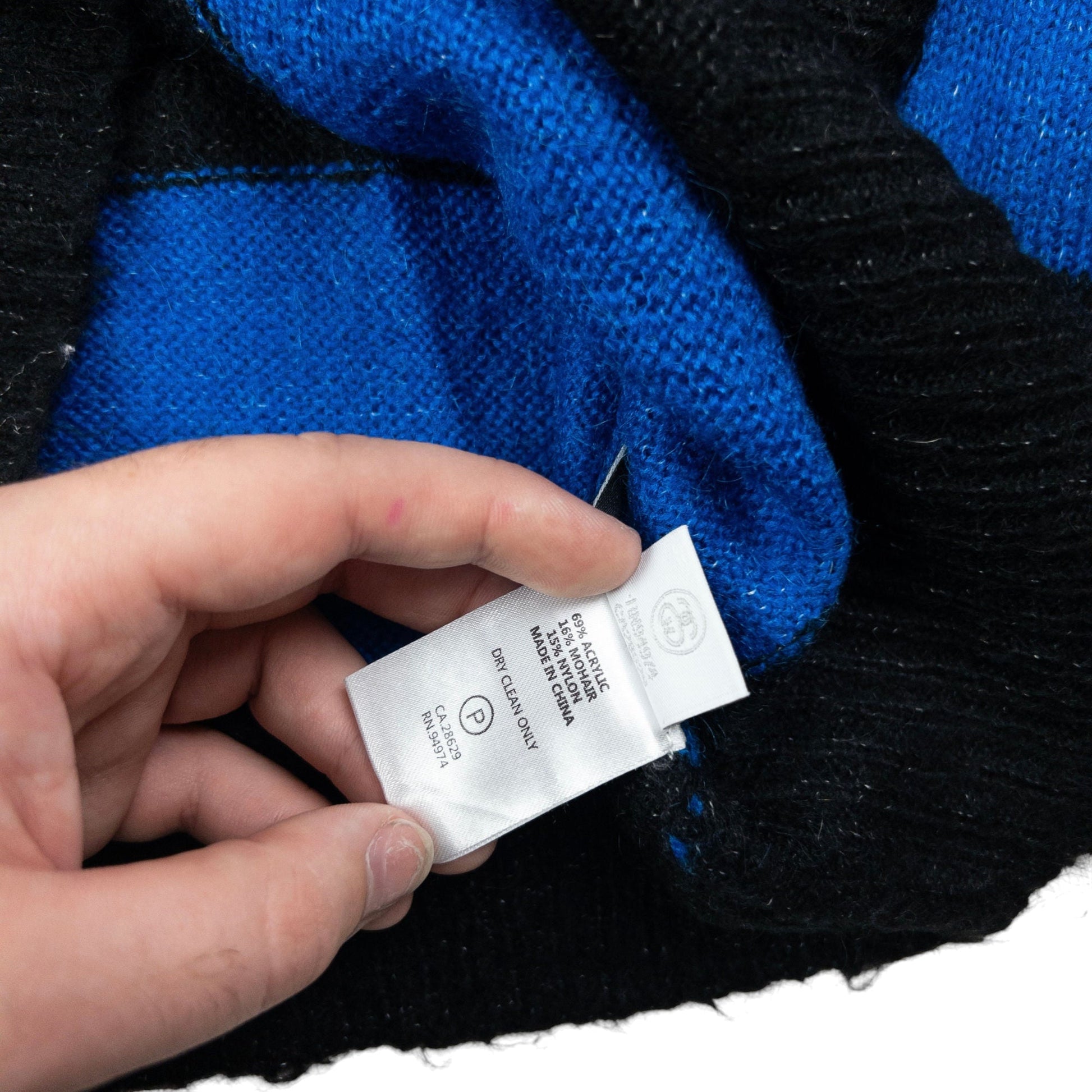 • Other info: Blue colour, black contrast colour, striped pattern, stretch knit, minor general wear as seen