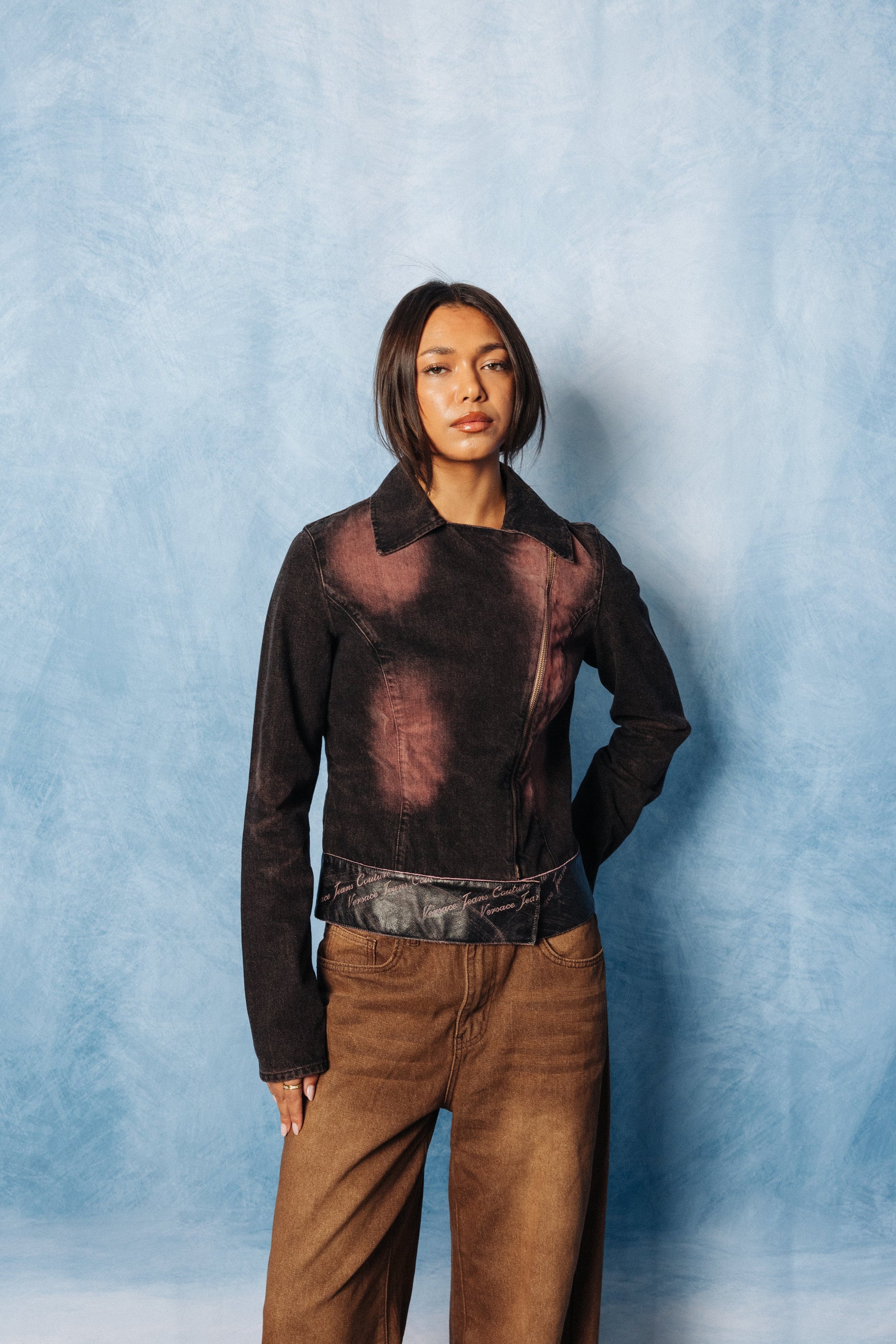 Versace Bleached Denim Grey Motorcycle Blouson